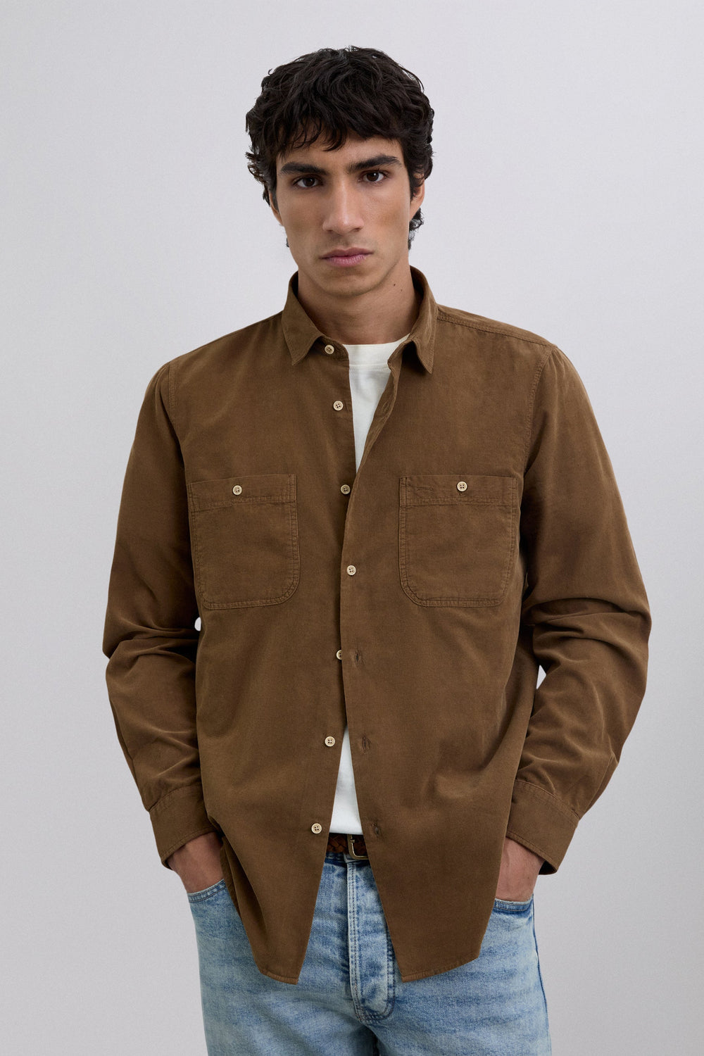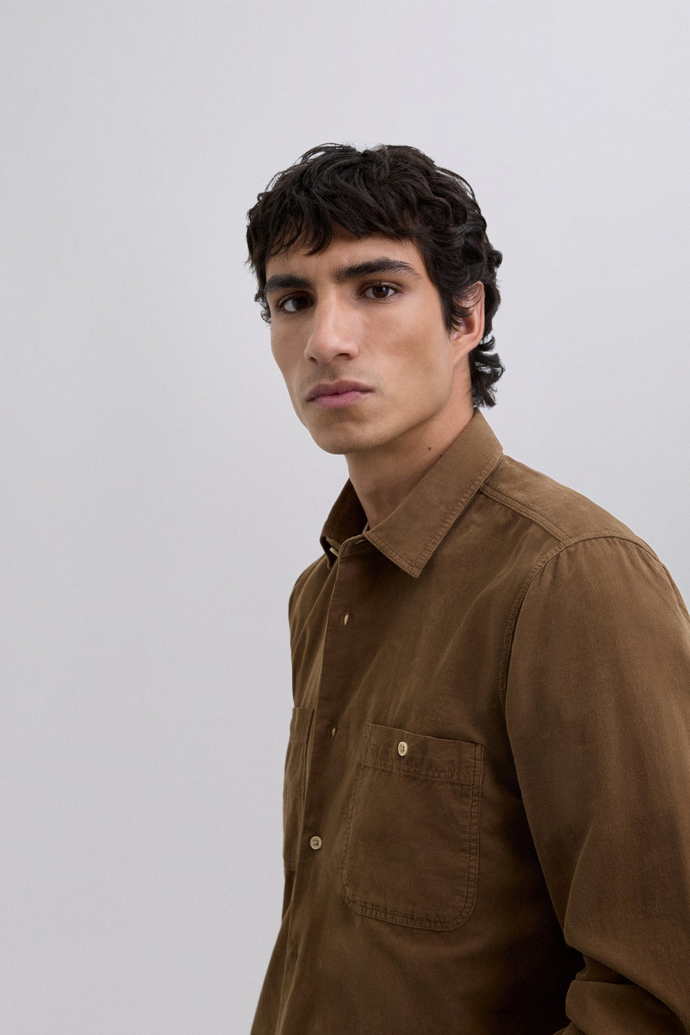 Shirt made of 100% BCI cotton corduroy. Regular fit. Long sleeves with buttoned cuffs. Patch chest pockets. Front button fastening.