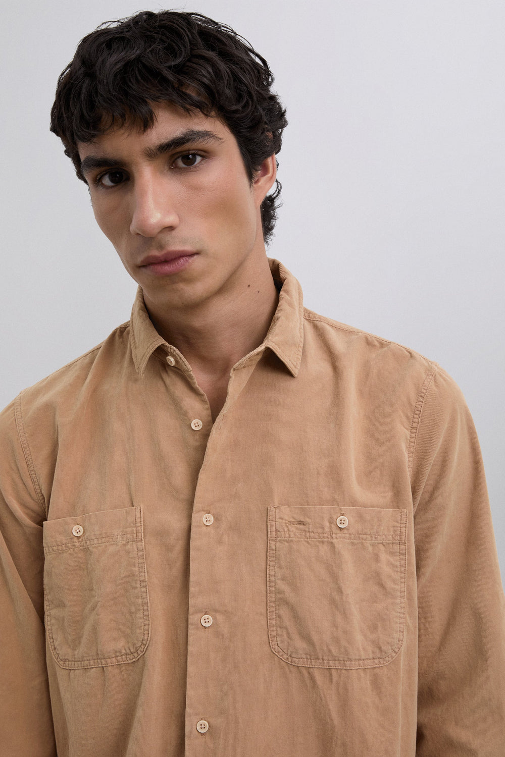 Shirt made of 100% BCI cotton corduroy. Regular fit. Long sleeves with buttoned cuffs. Patch chest pockets. Front button fastening.