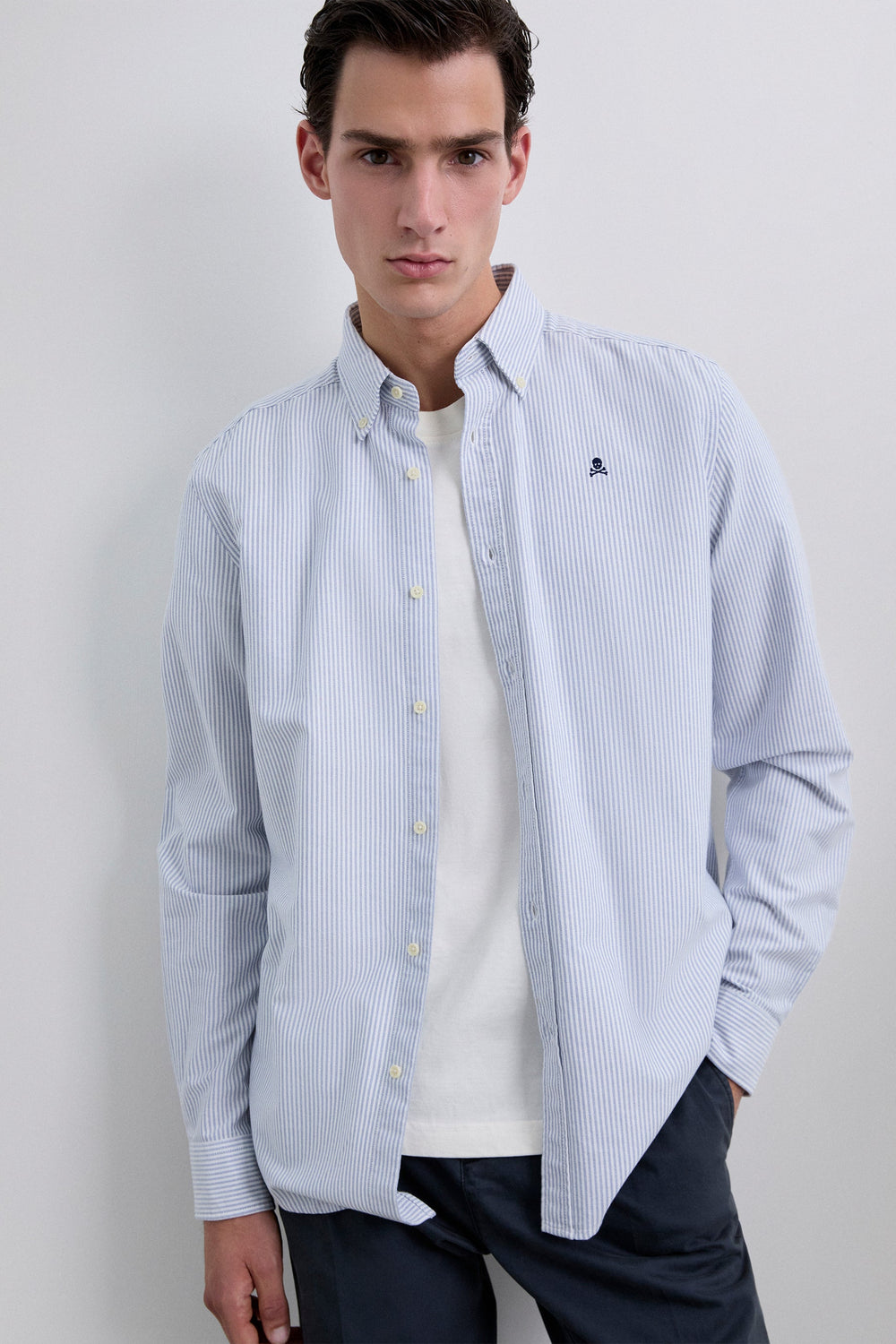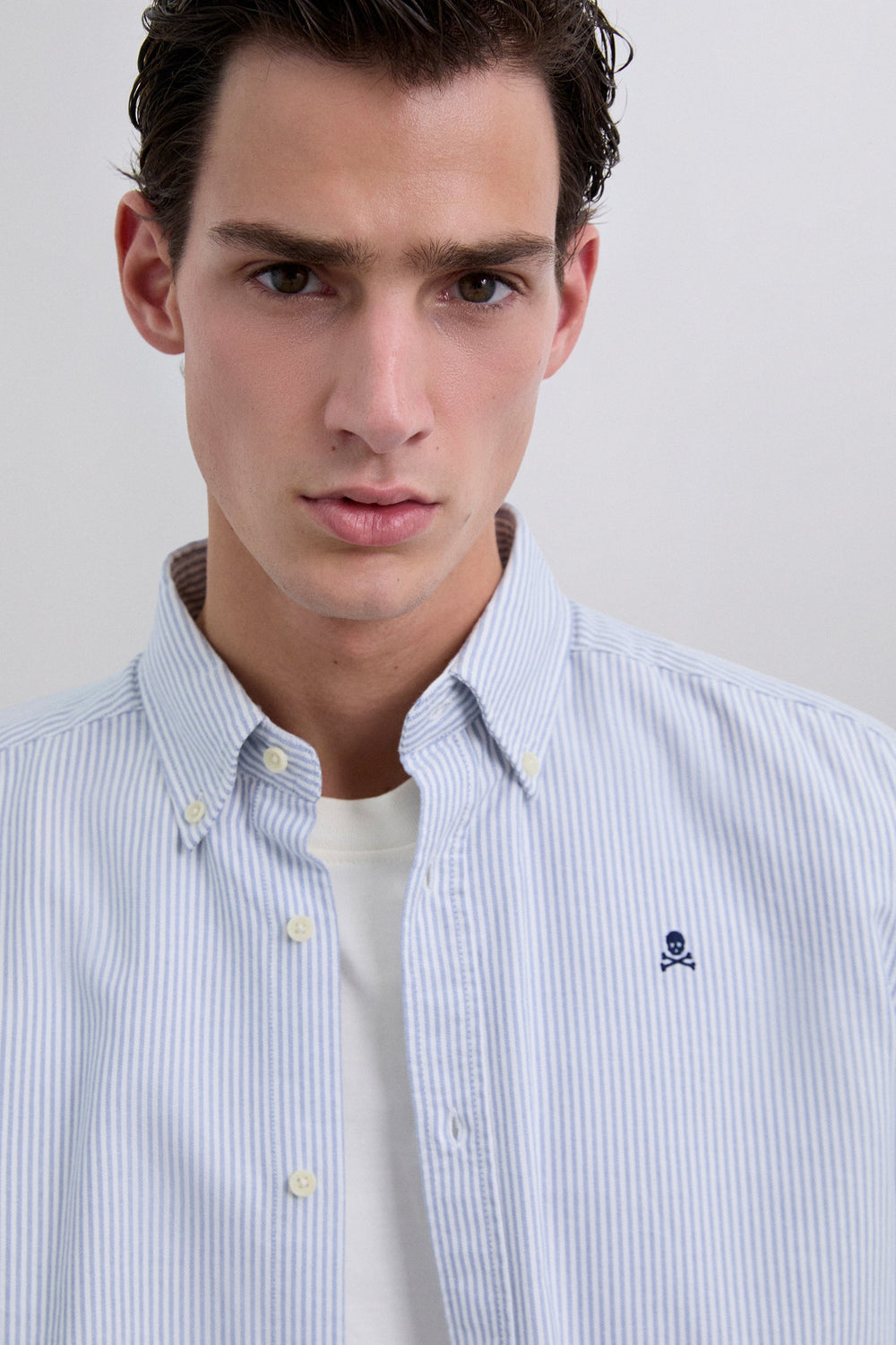 Striped shirt made of 100% BCI cotton. Classic collar, button fastening, slim fit, contrast skull on chest. Buttoned cuffs.