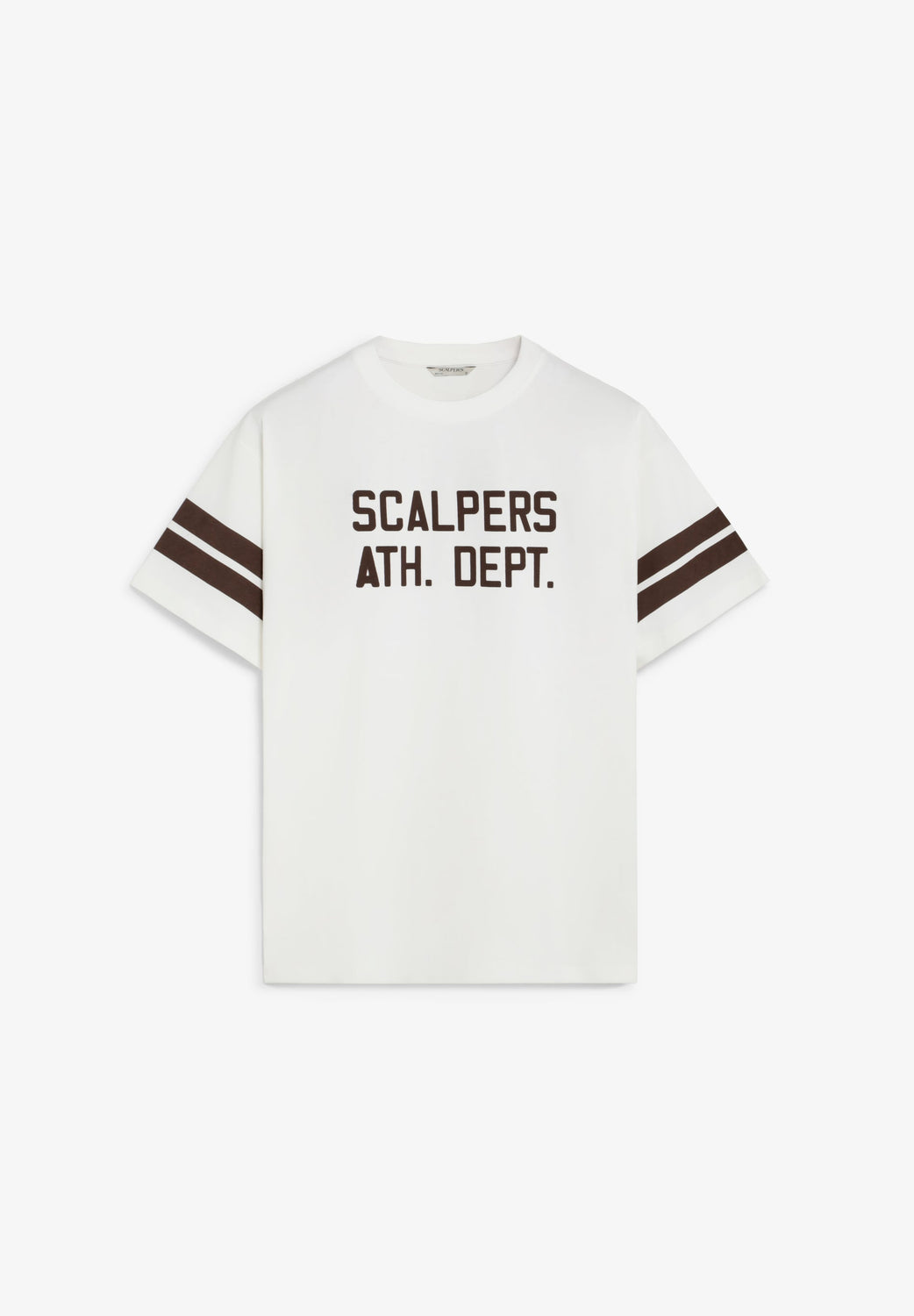 T-shirt made of 100% BCI cotton. Short sleeve. Ribbed round neck Boxy fit. Contrast printed graphic on the front and sleeves.