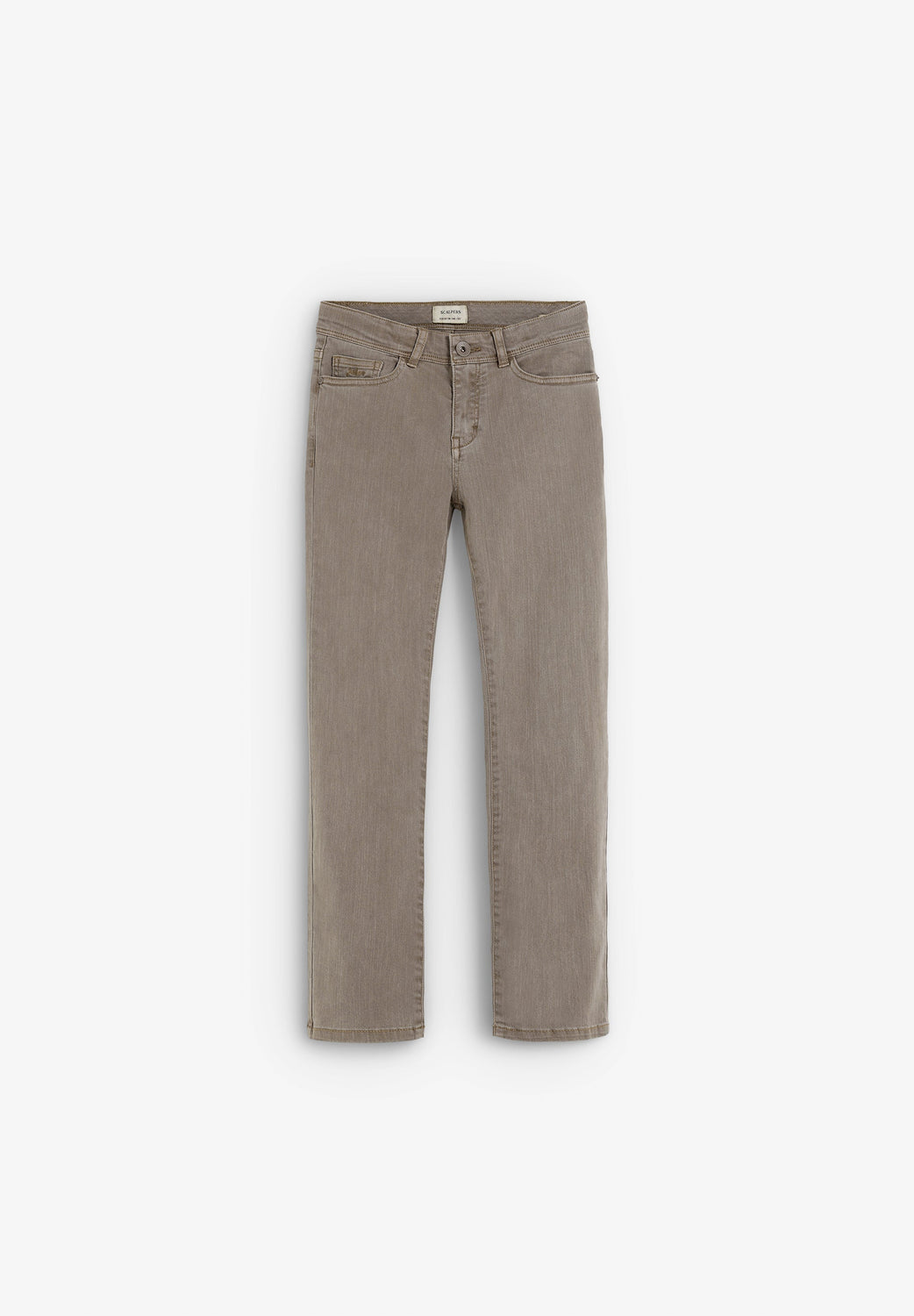 Trousers made of organic BCI cotton. Front button fastening. Front and back pockets.