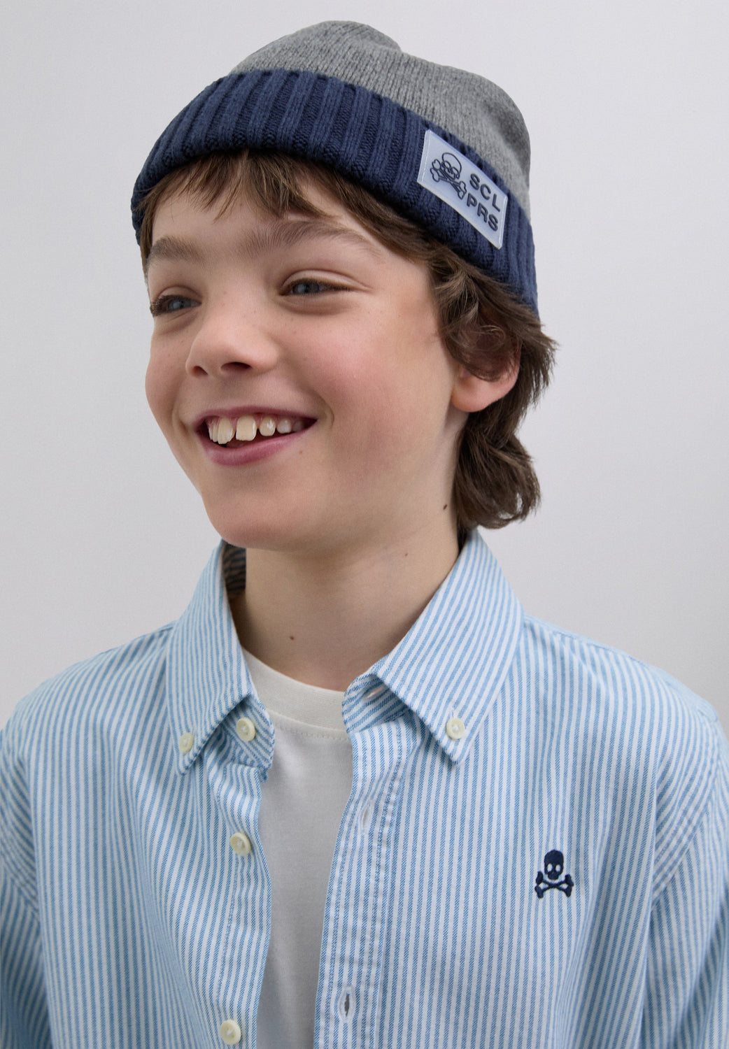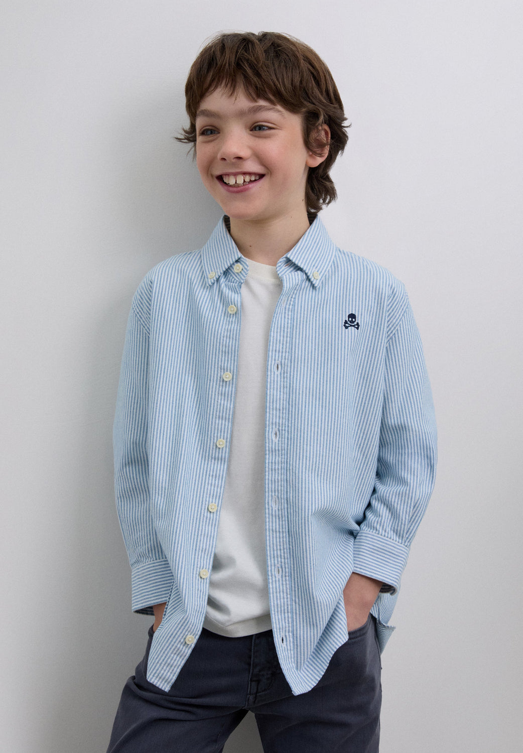 Striped shirt made of 100% BCI cotton. Classic collar, button fastening, regular fit, contrast skull on chest. Buttoned cuffs.