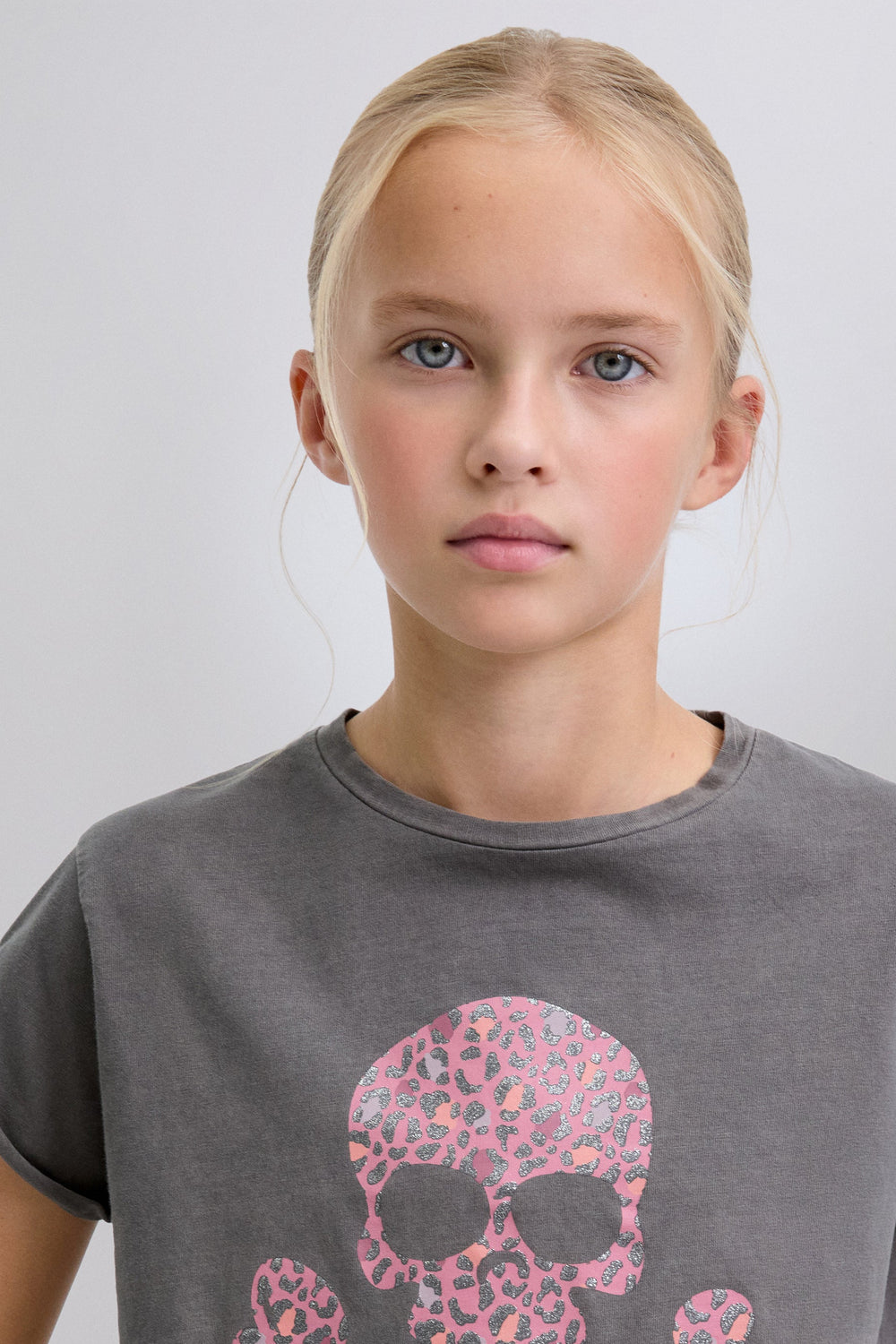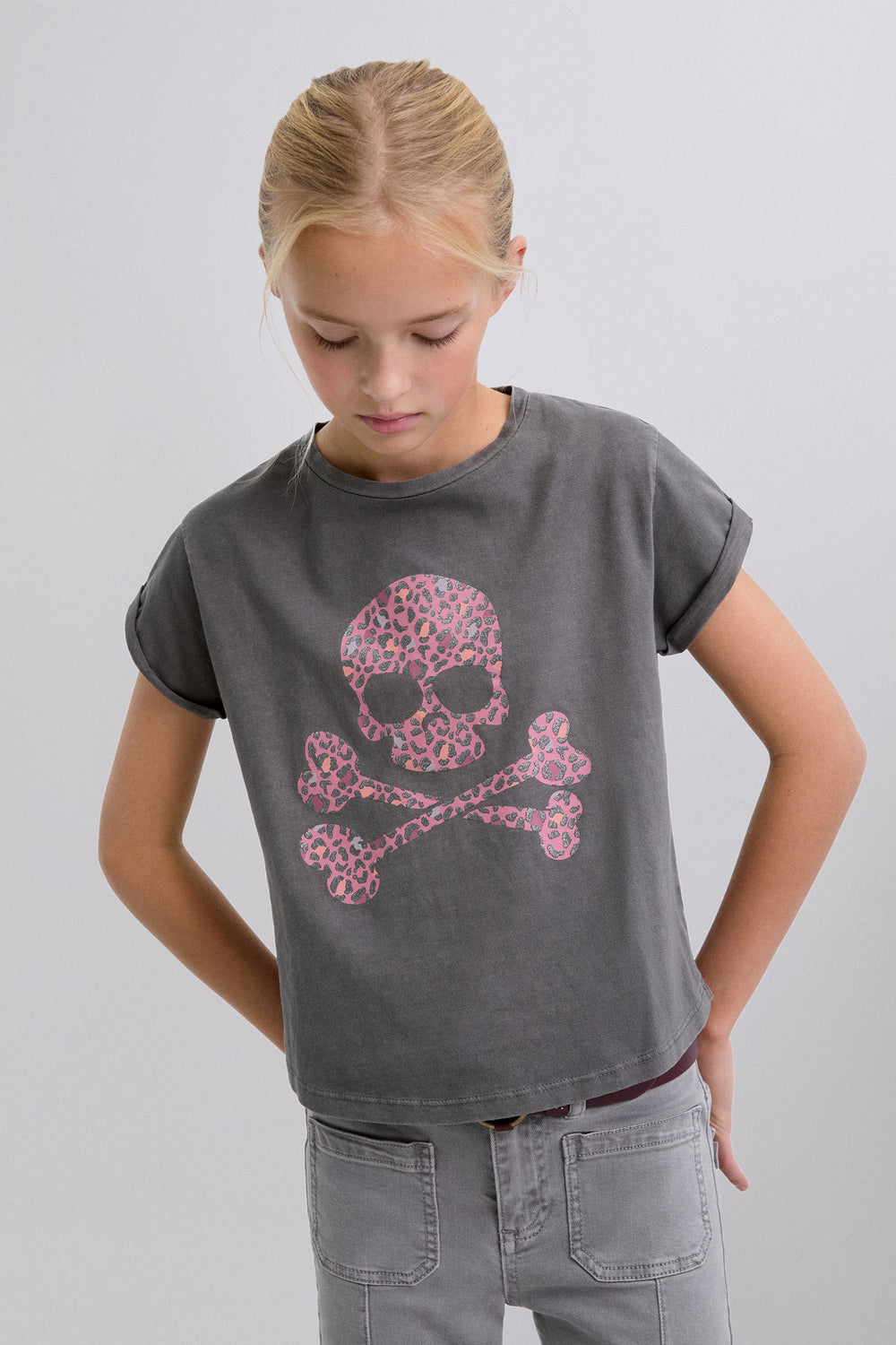 T-shirt made of 100% BCI cotton. Regular fit, round neck and short sleeves. Contrast front skull print on the chest.