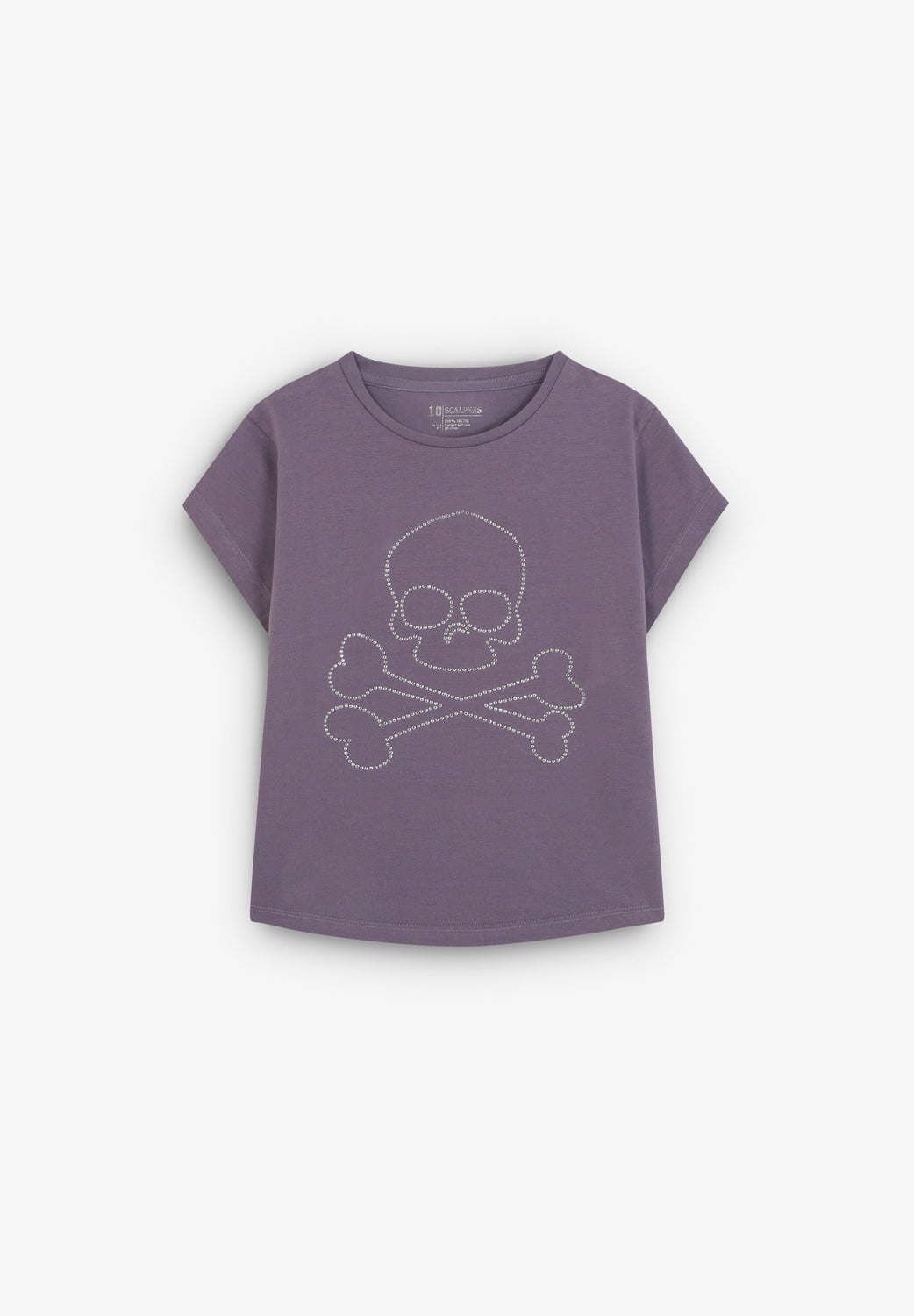T-shirt made of 100% BCI cotton. Short sleeve. Round neck. Skull with rhinestones on front.