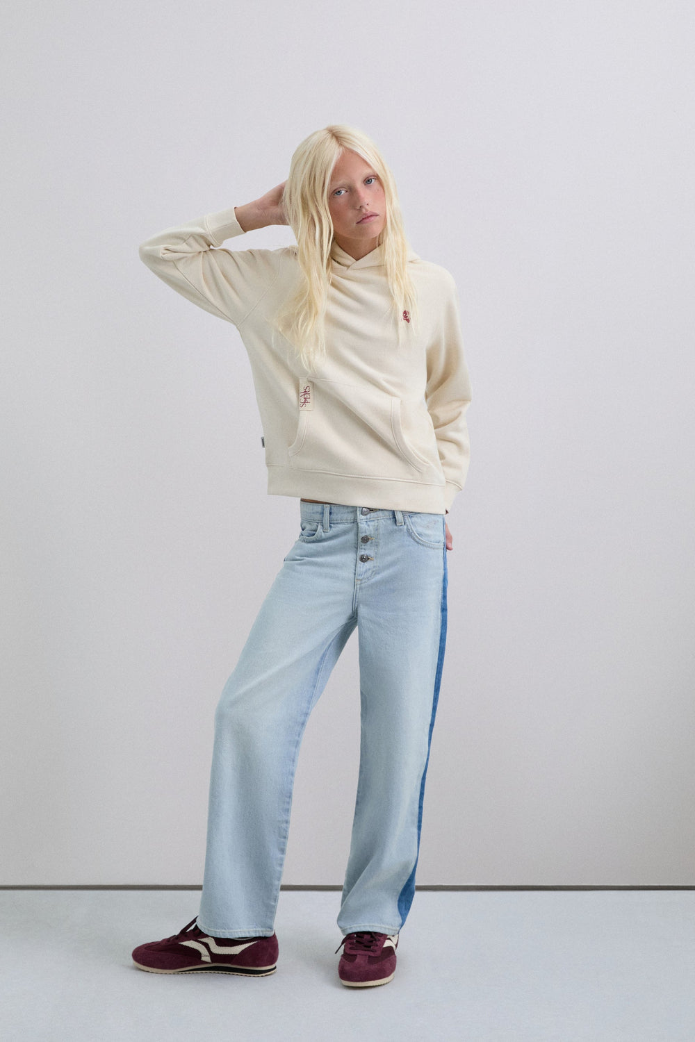 Sweatshirt with hood made of 100% BCI cotton. Long sleeves. Contrast embroidered skull detail on the chest and embroidered logo on the back. Front pocket pouch pocket with contrast logo detail. Ribbed trim on waistband and cuffs.