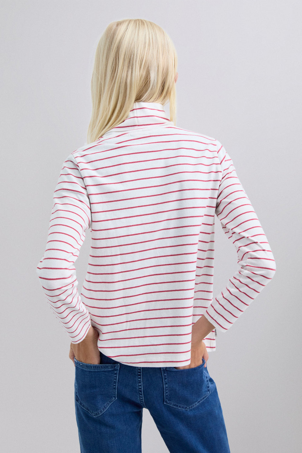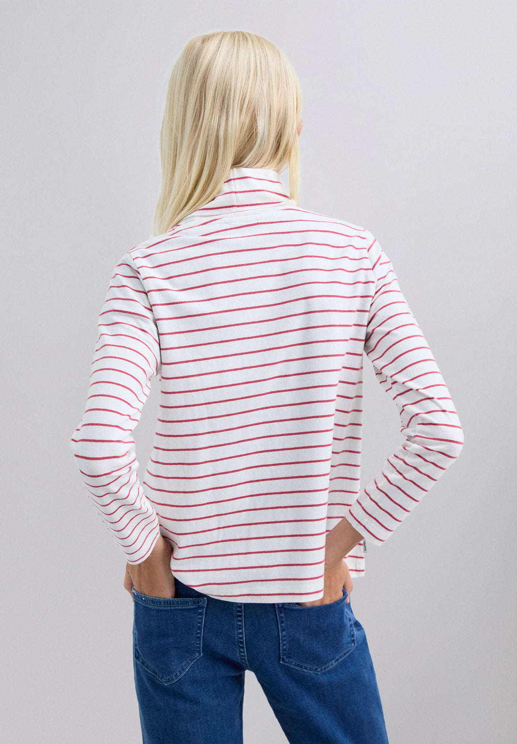 Striped T-shirt made of 100% BCI cotton. Long sleeves and turn-down collar. Logo detail on the chest.
