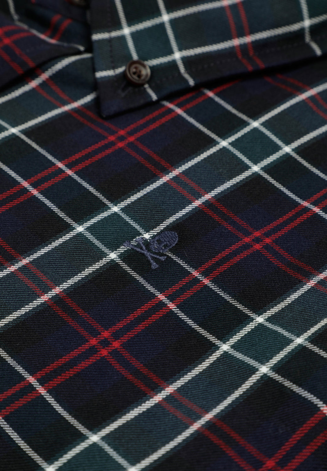 Shirt made of tartan BCI cotton. Regular fit, collar with buttons and button fastening. Long sleeves with buttoned cuffs and contrast embroidered skull on the chest.