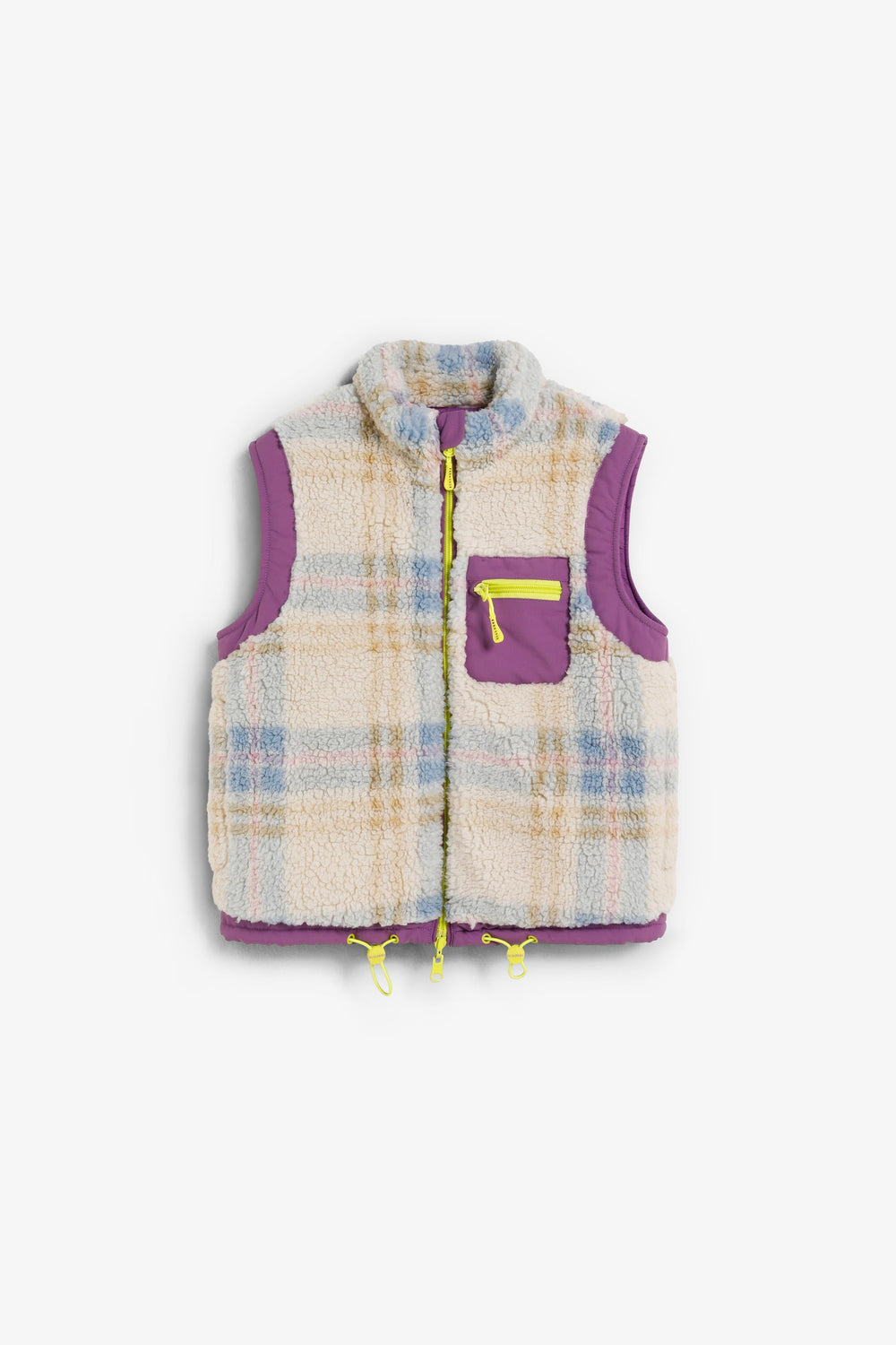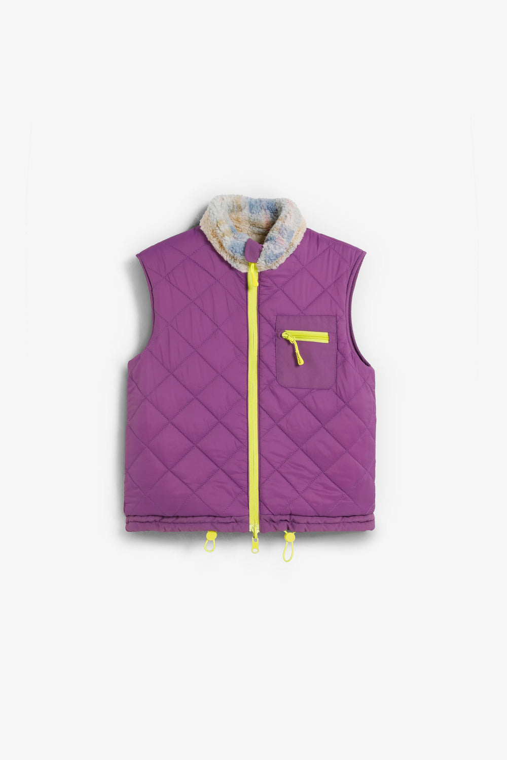 Reflective vest made of synthetic blend fabric. Contrast trim. Zipped chest pocket.