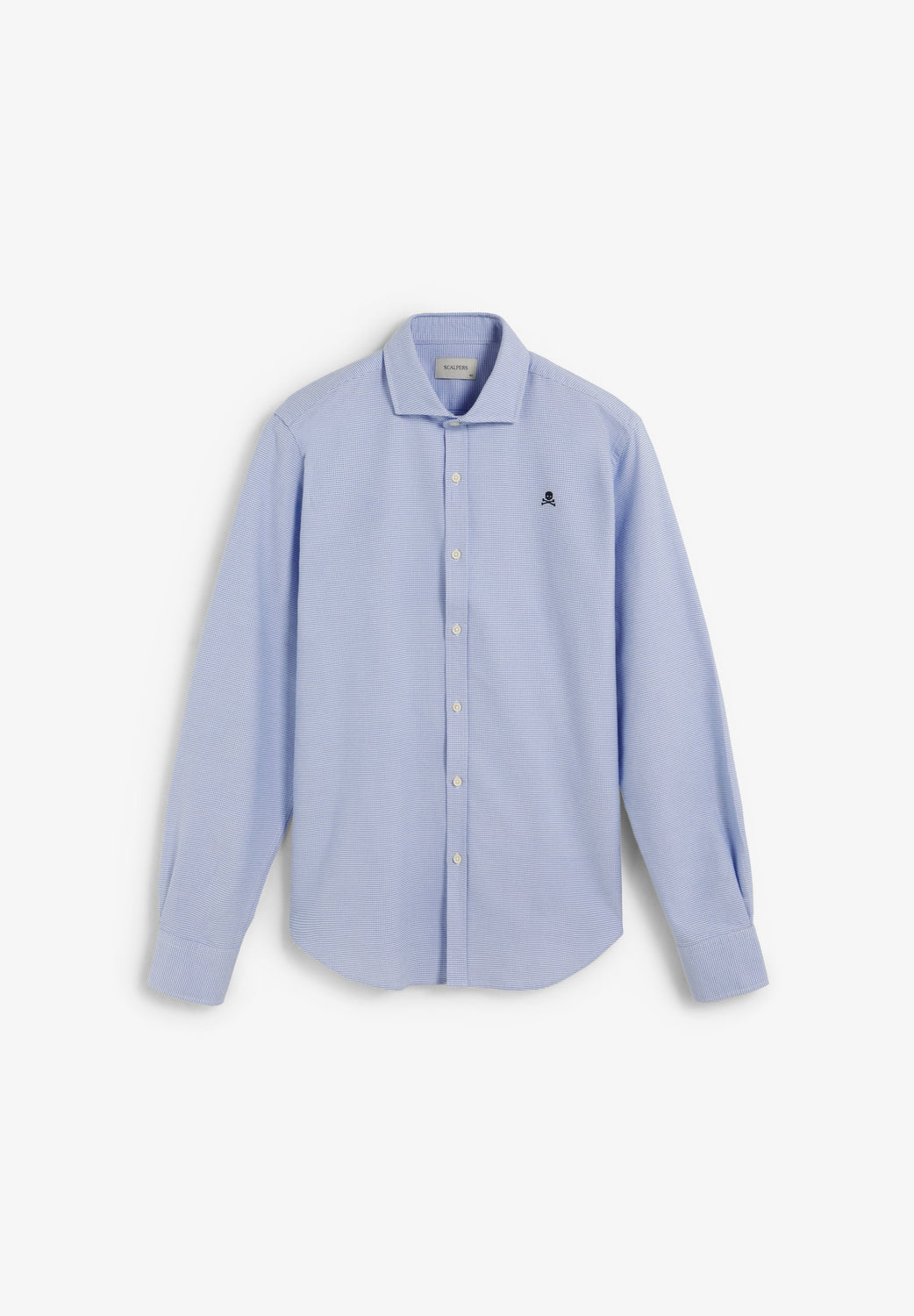 Striped shirt made of 100% BCI cotton. Classic collar, button fastening, regular fit, contrast skull on chest. Buttoned cuffs.