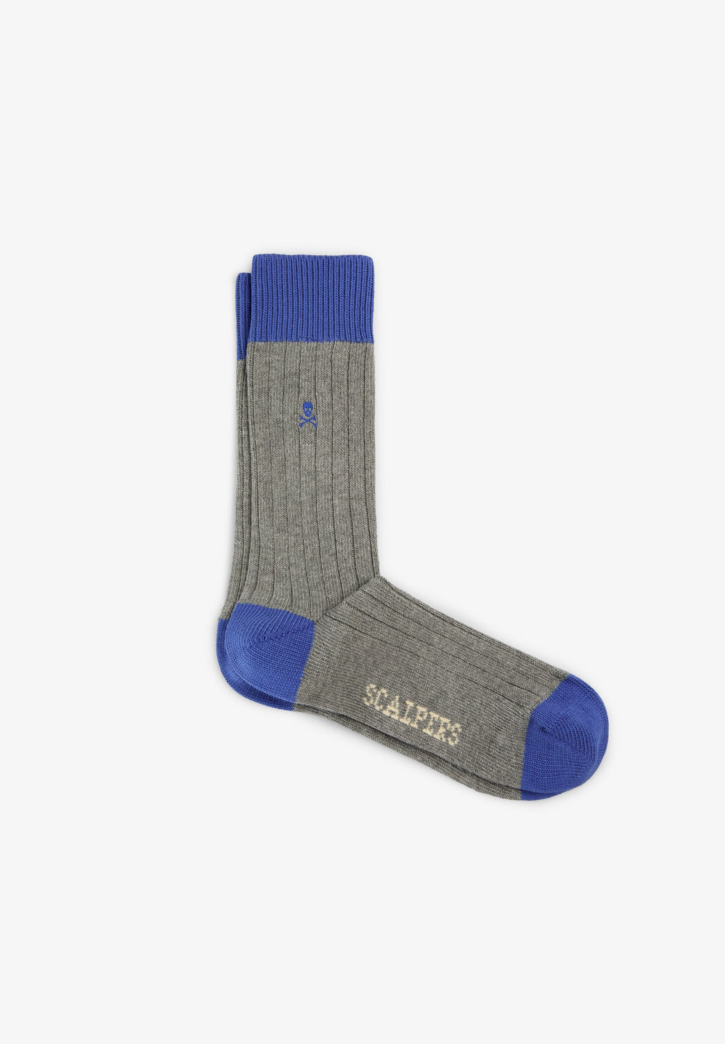 Ribbed socks made of an organic cotton blend. Contrast toe, heel and ankle. Contrast embroidered skull on leg.