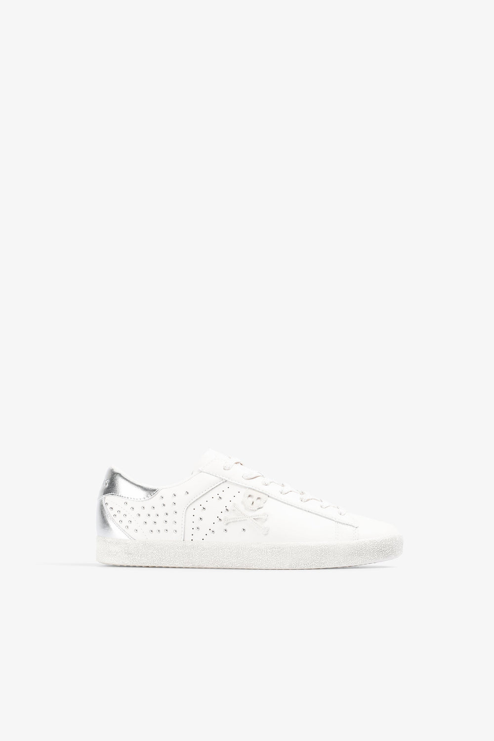 Sneakers made of 100% leather. Contrast embroidered skull on side. Studs detail on the side. Contrast silver heel with matching embroidered logo. Rubber sole Matching lace-up fastening.