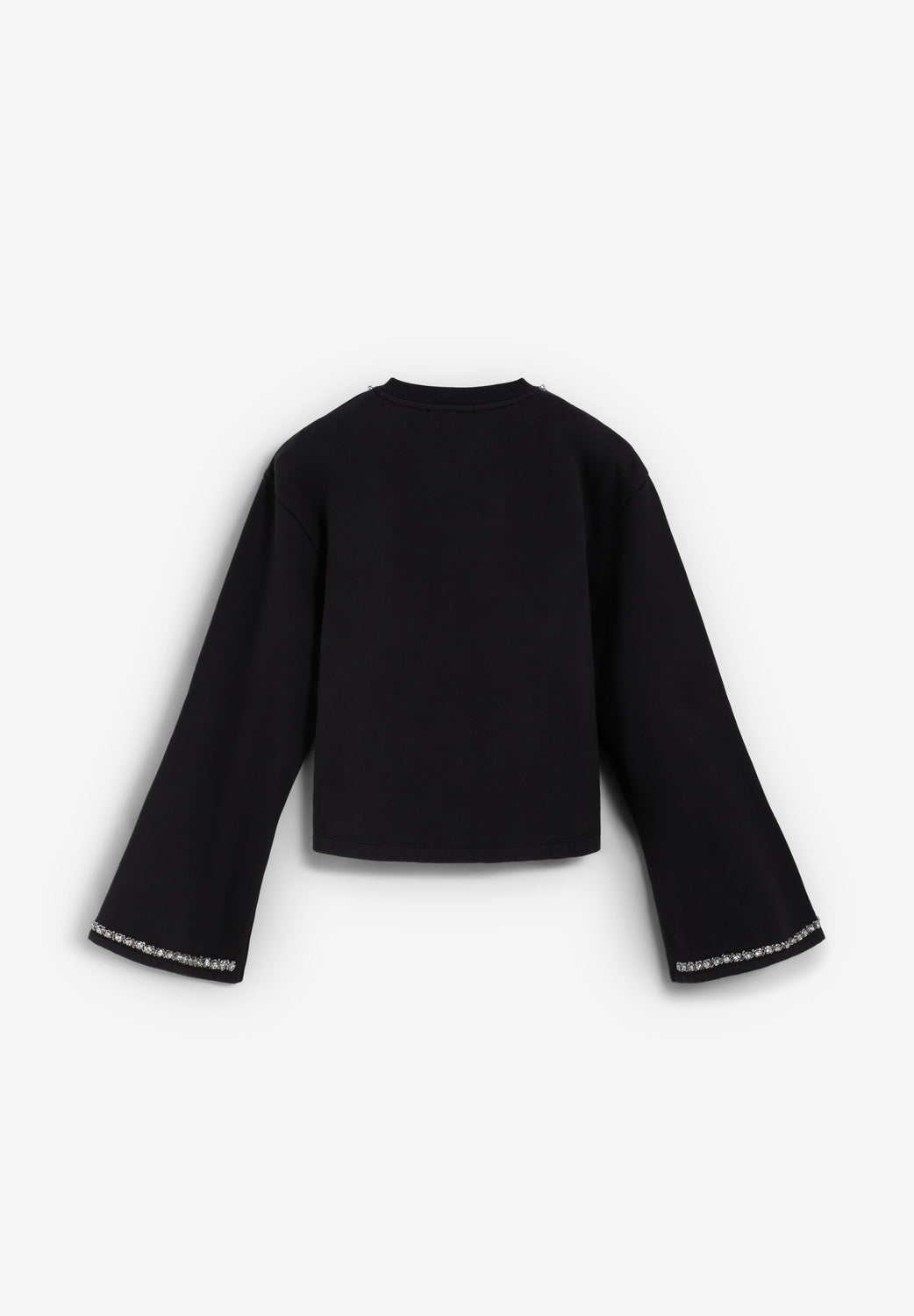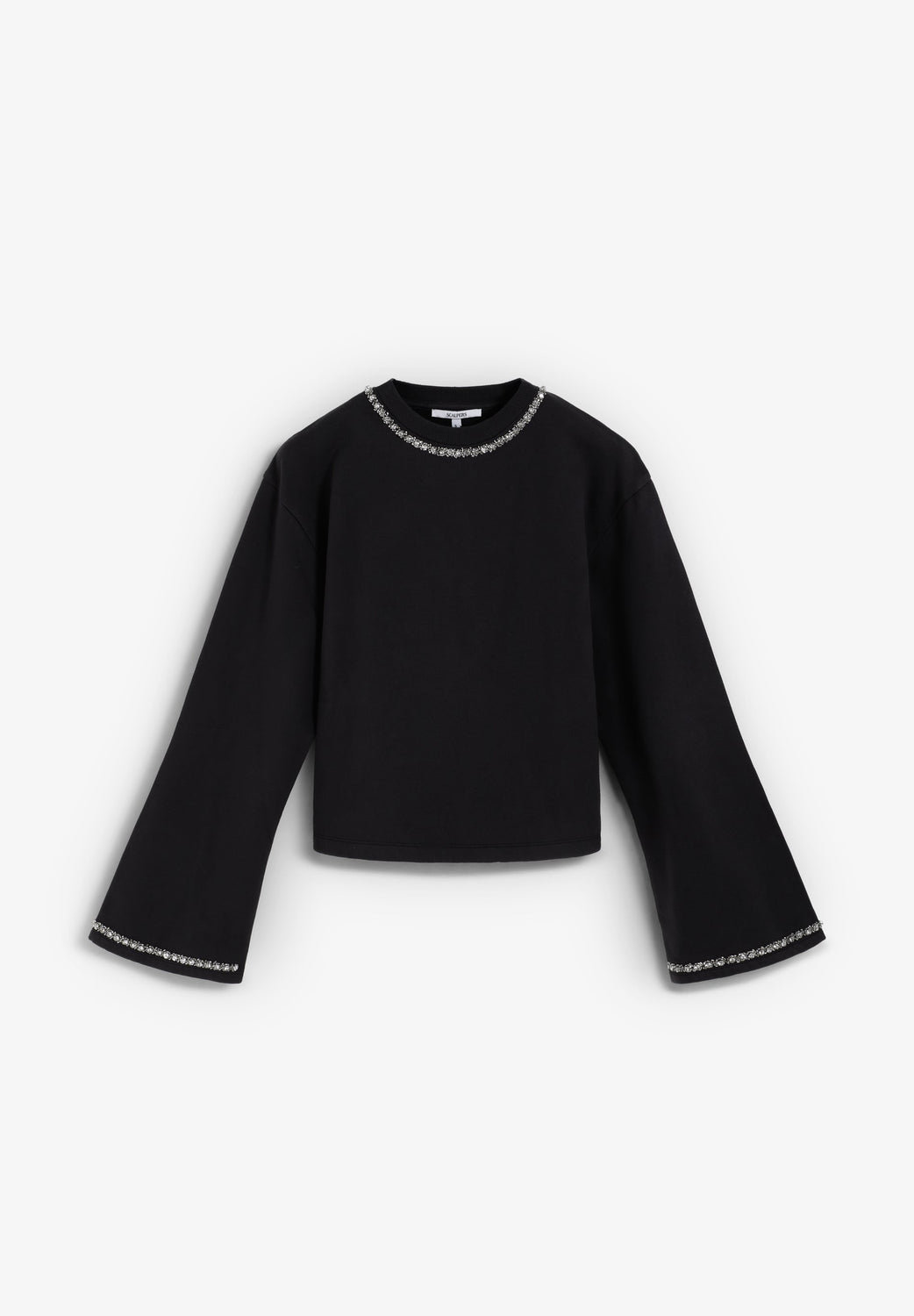 Knit sweater. Regular fit. Round neck. Slightly flared long sleeves. Sequinned trims.