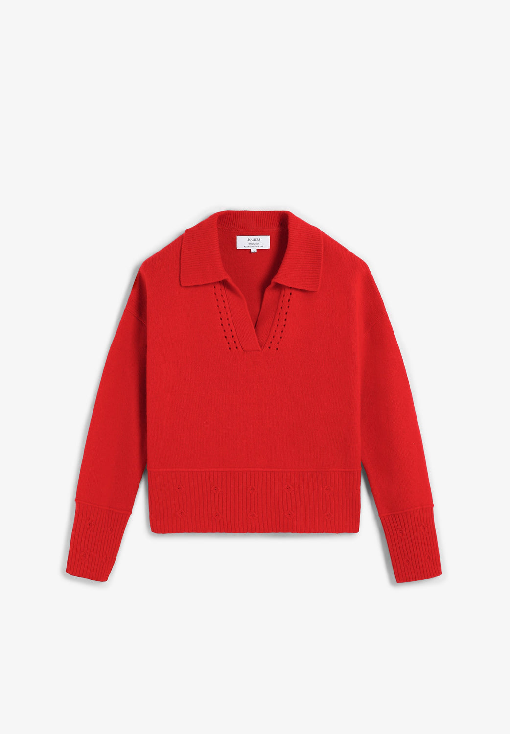 Polo shirt-style sweater made of a wool and cashmere blend. Polo shirt-style collar with cutout detailing. Regular fit. Long sleeves with ribbed cuffs. Ribbed hem with embossed detailing.