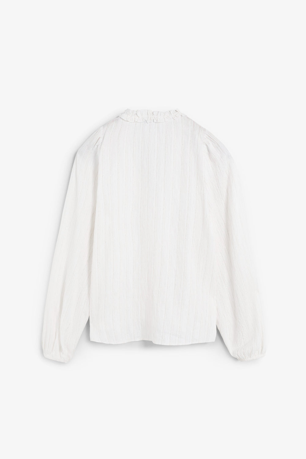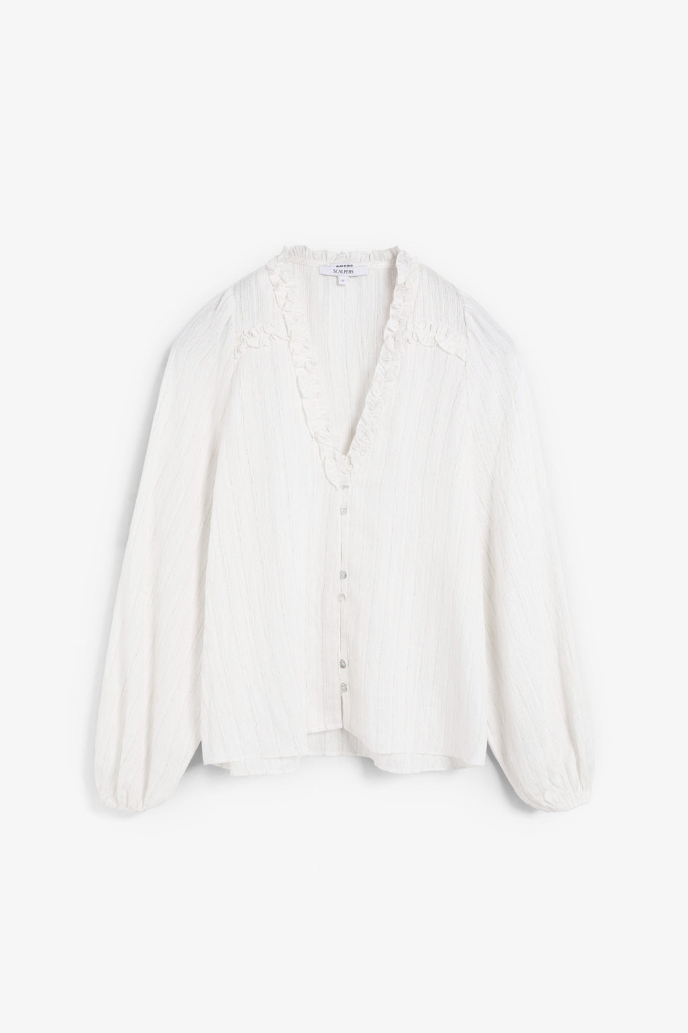 METALLIC THREAD BLOUSE WITH RUFFLES
