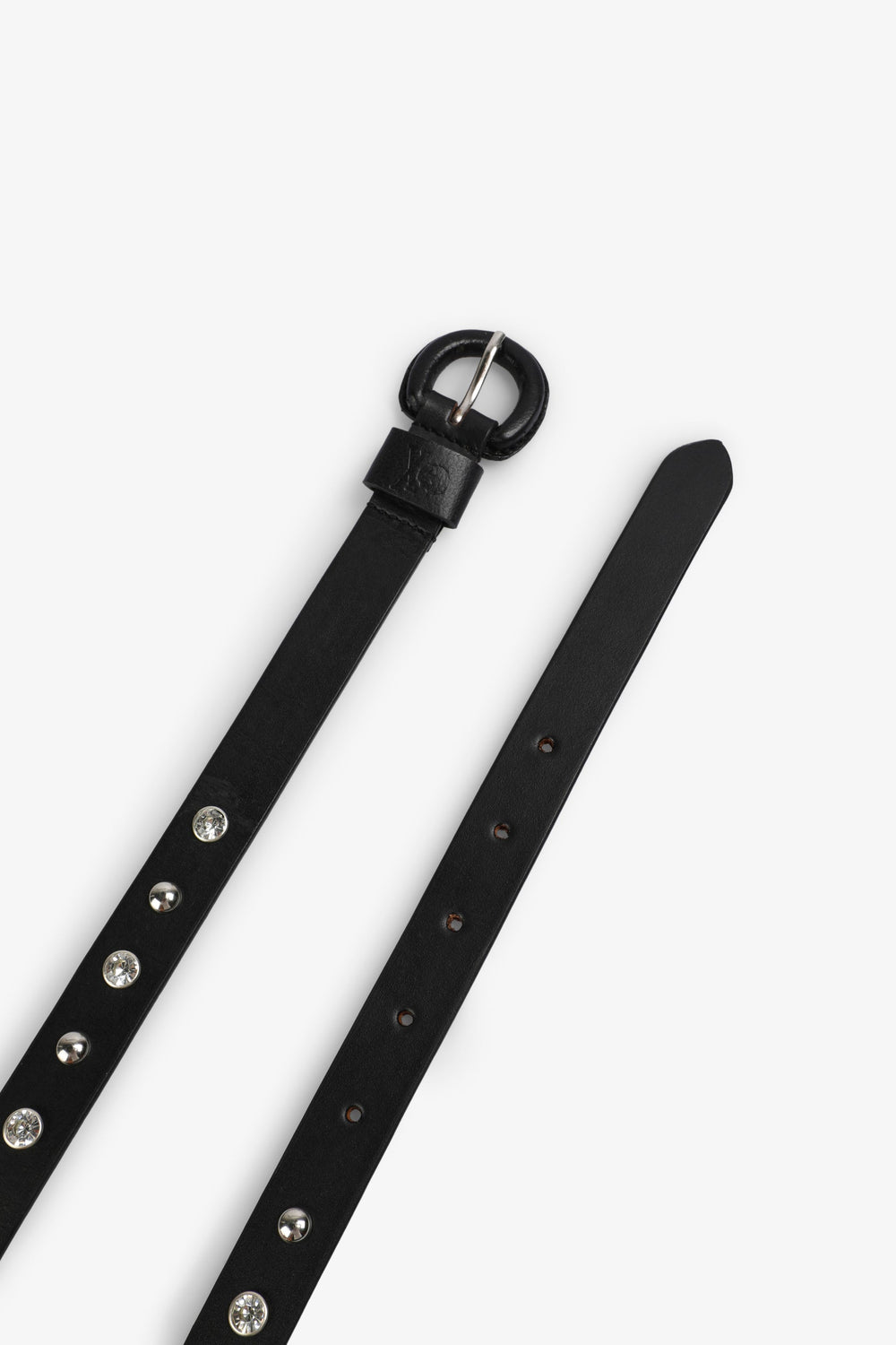 LEATHER BELT WITH RHINESTONES AND STUDS
