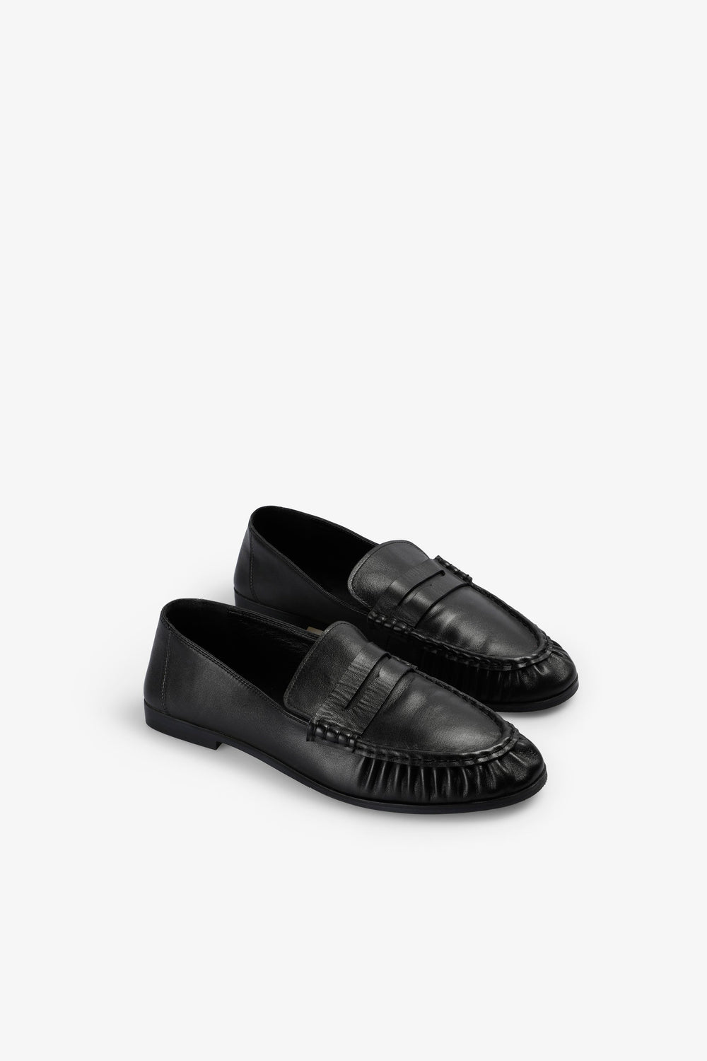 Loafers in 100% leather. Mask. Rounded, pointed-shaped last.