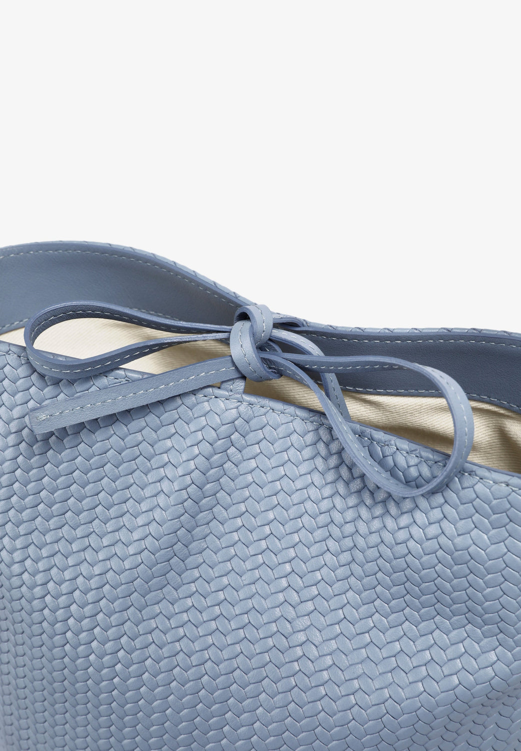 Bucket bag made of braided 100% leather. Inner lining with zipped pocket. Closes with adjustable straps. Long strap. Rubberised logo detail on the front.