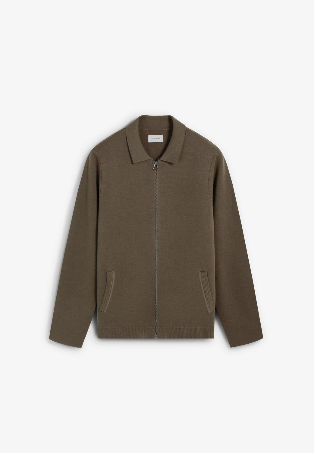 Cardigan made of 100% wool. Polo shirt collar. Front pockets. Zip closure.