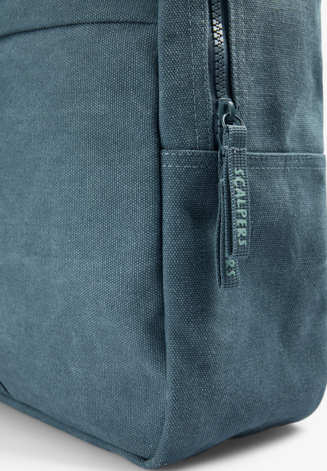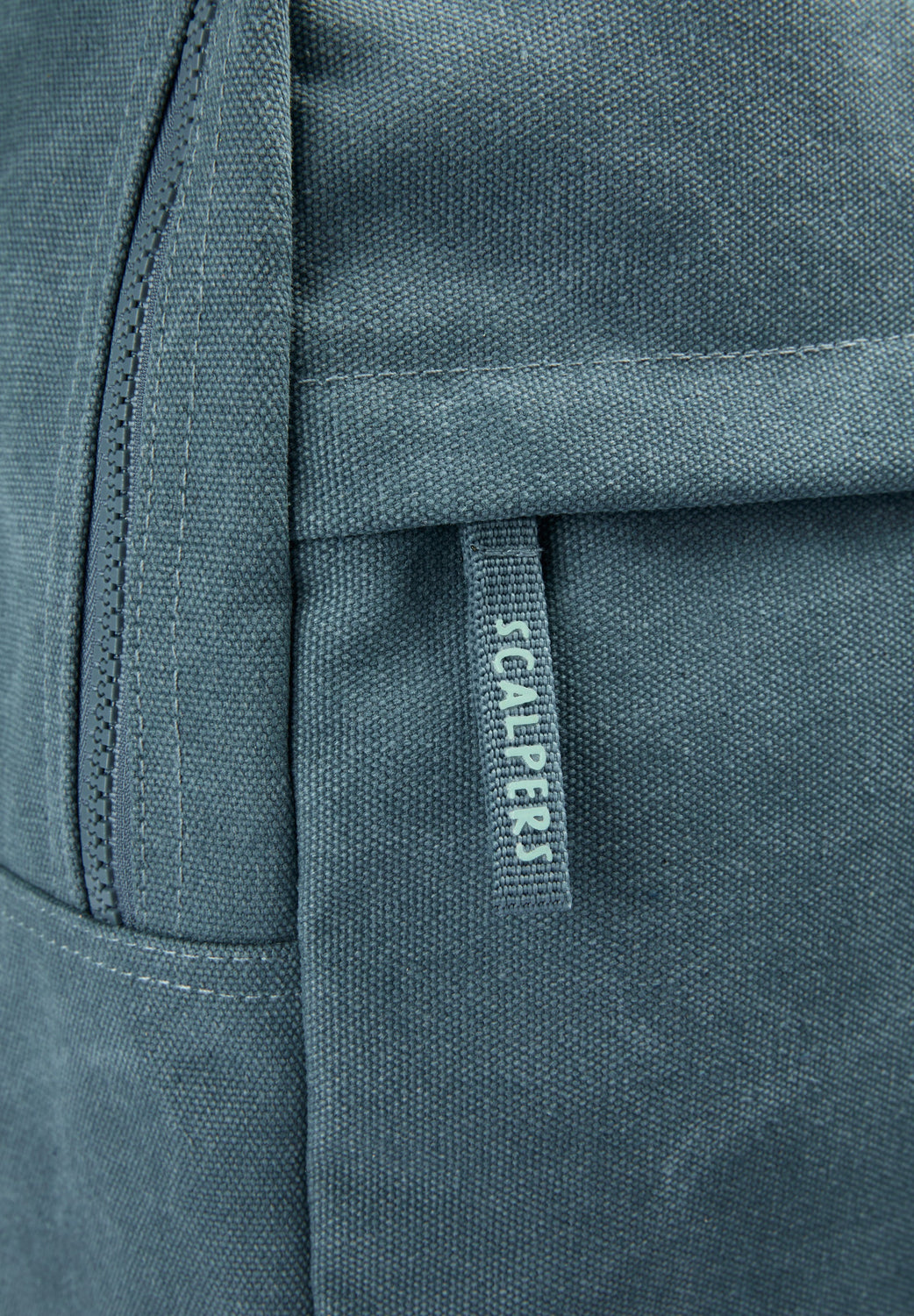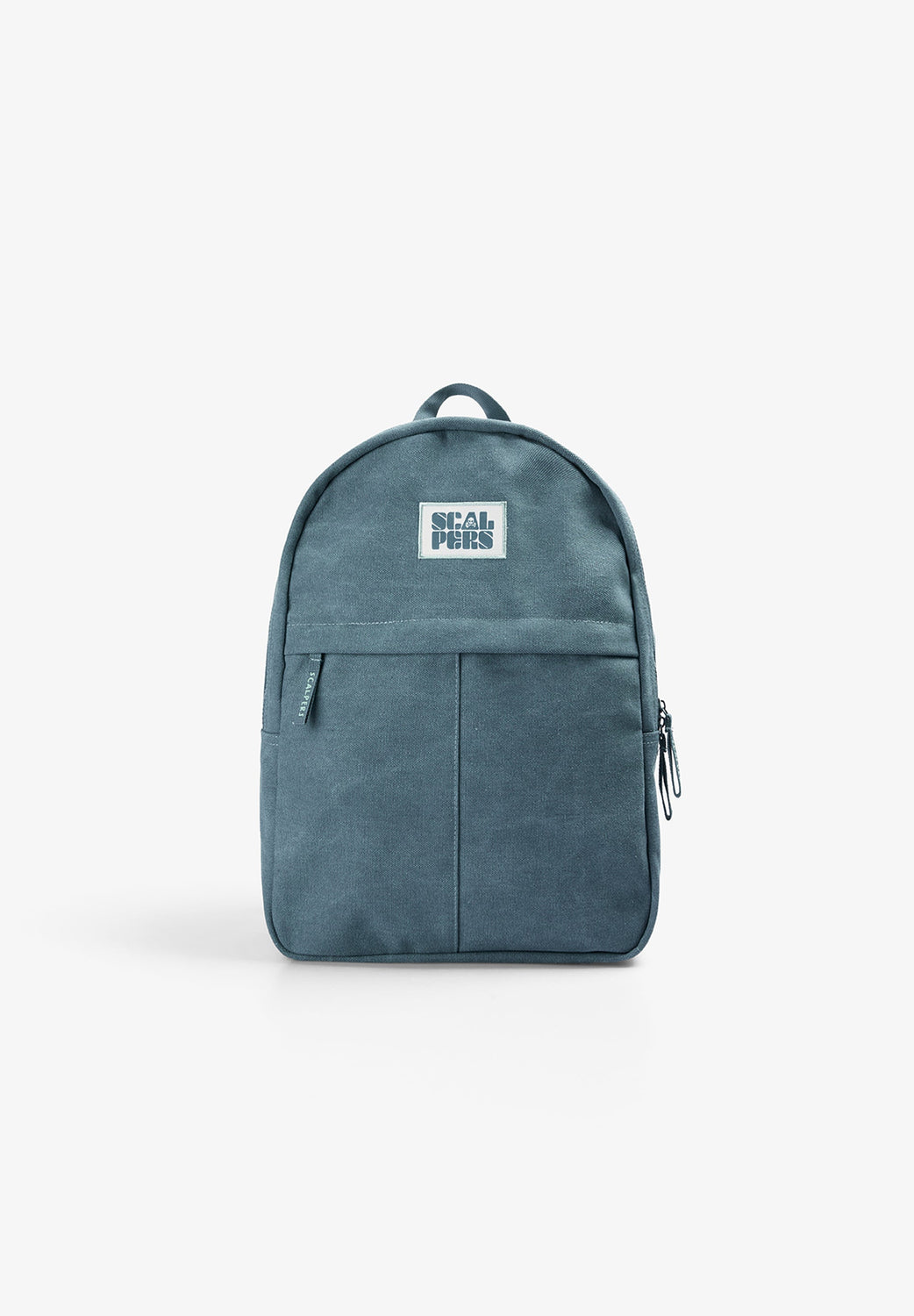 Backpack made of a canvas fabric. Top handle. Additional pocket at the front. Embroidered patch on the front. Inner compartment. Includes name tag inside.