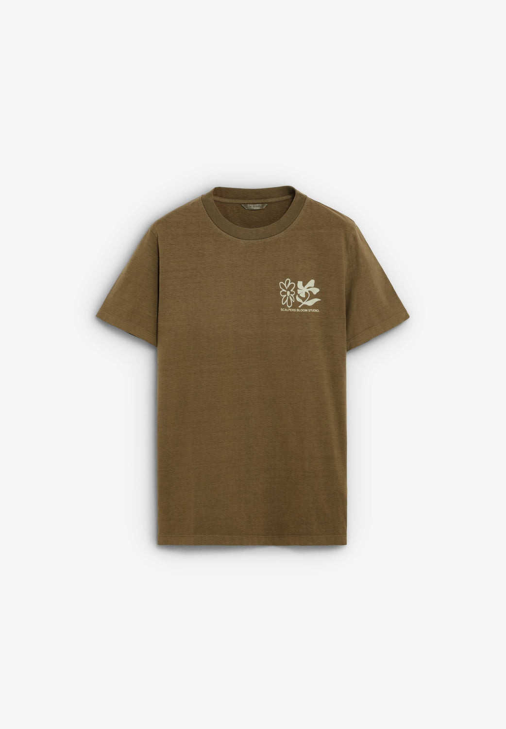 T-shirt made of 100% BCI cotton. Short sleeve. Ribbed round neck Garment with faded effect finish. Contrast print on chest and back.