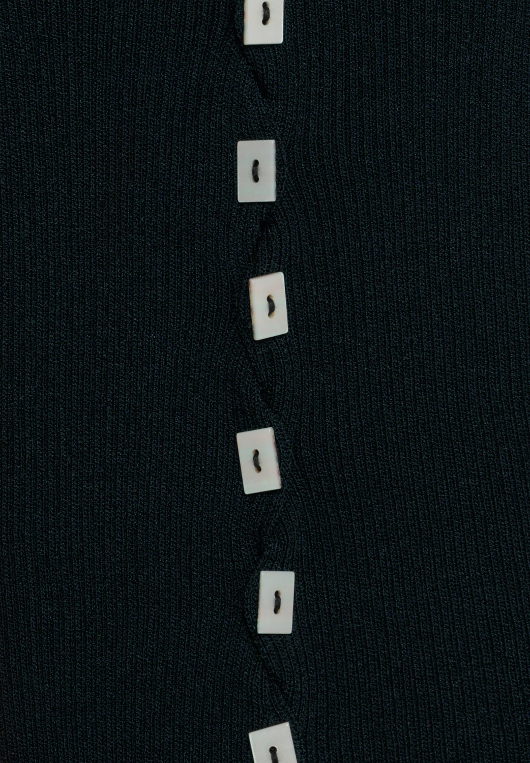 Asymmetric top made of ribbed knit fabric. V-neck. Decorative side appliqués integrated into the seam.