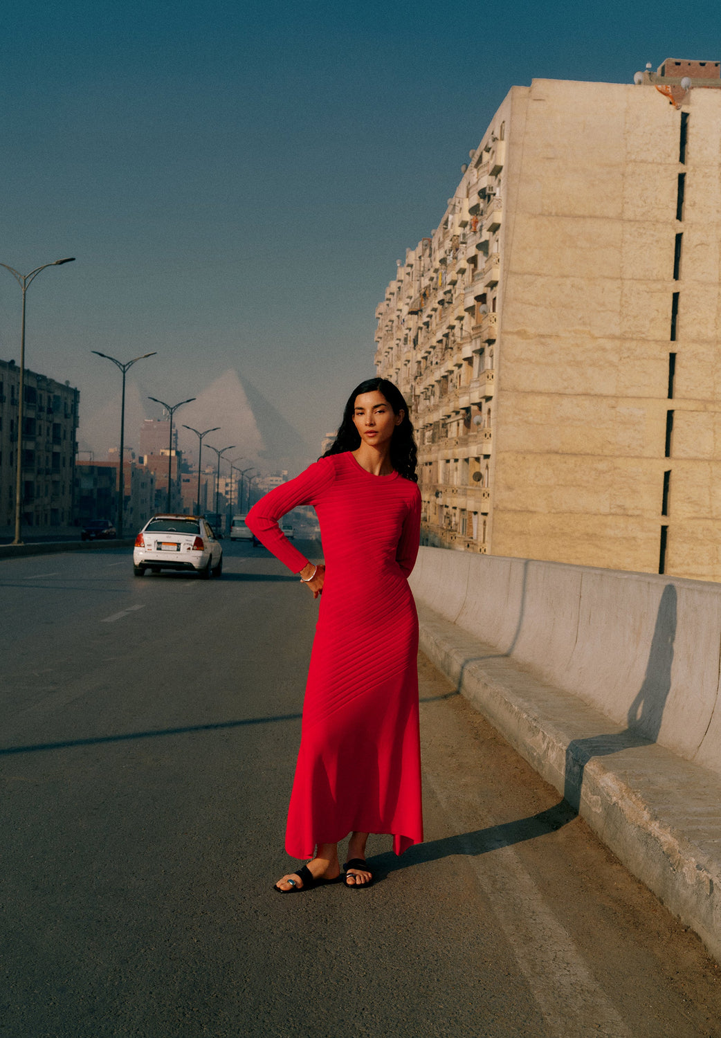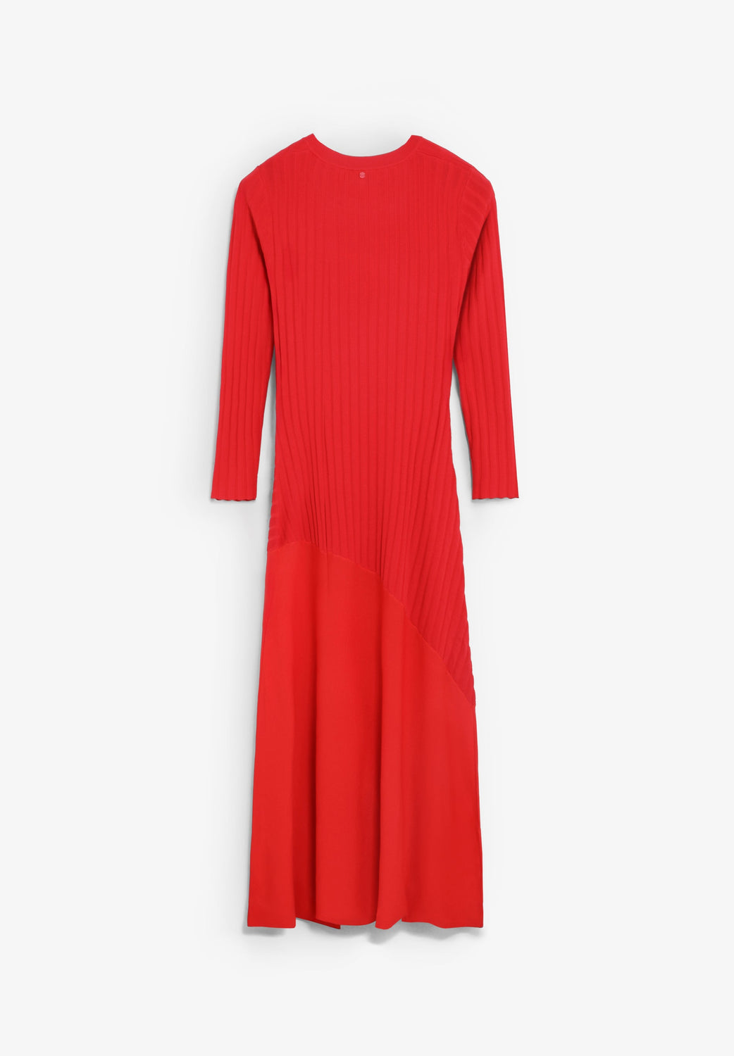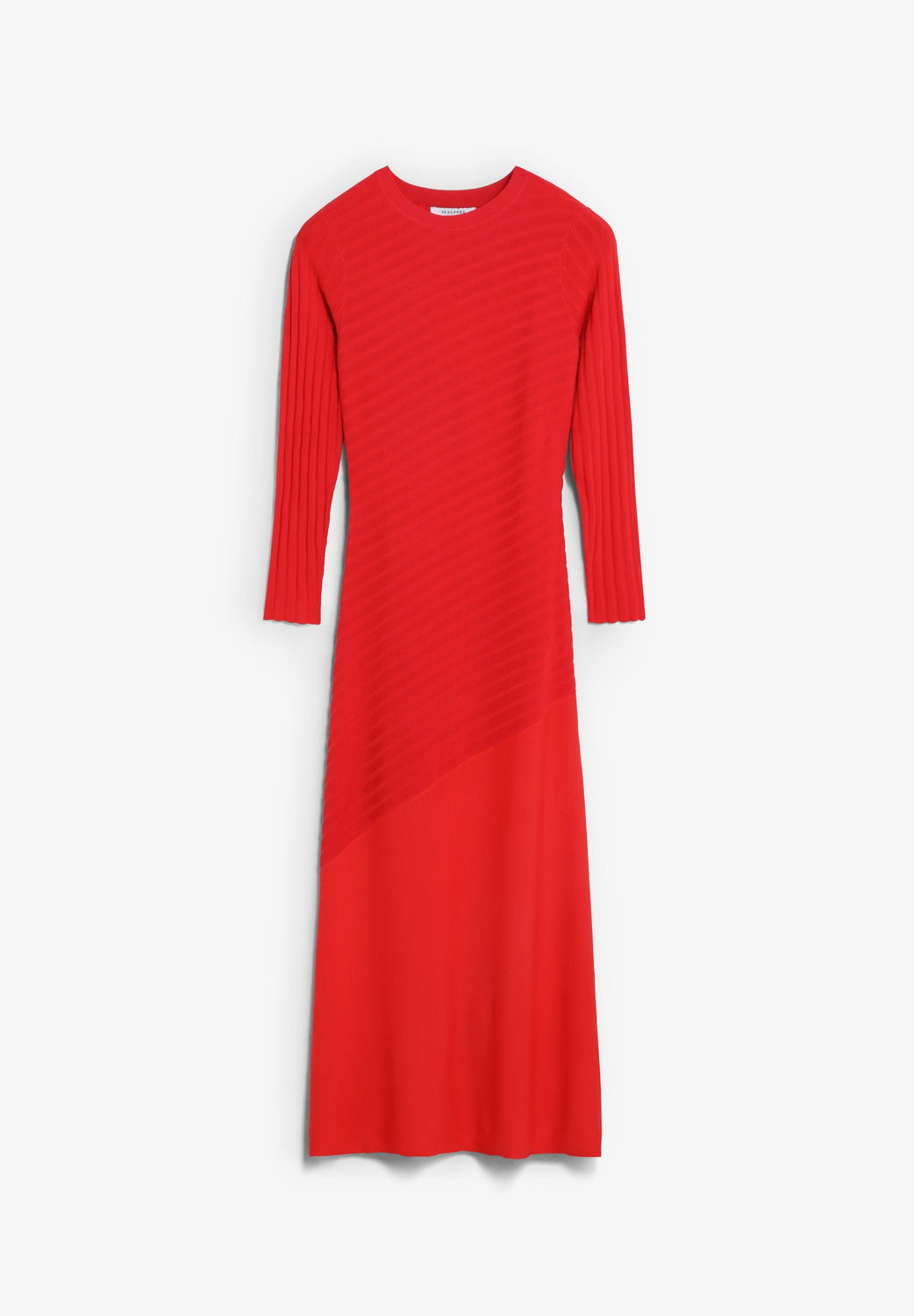 Slightly stretchy knit dress with contrasting knitted details in a monotone stripe print. Slim fit, round neck and long sleeves.