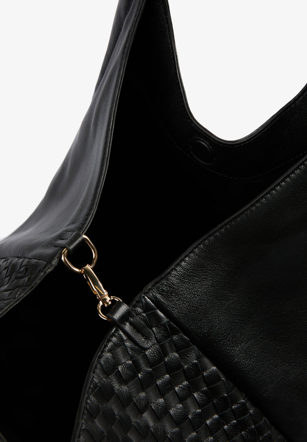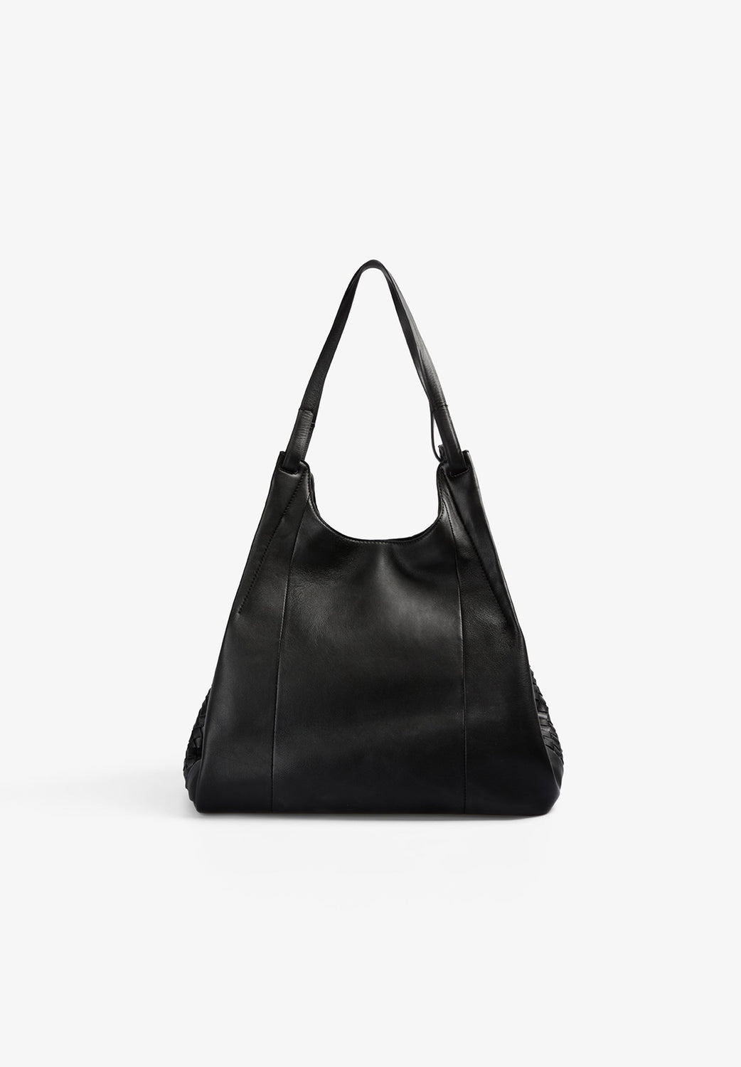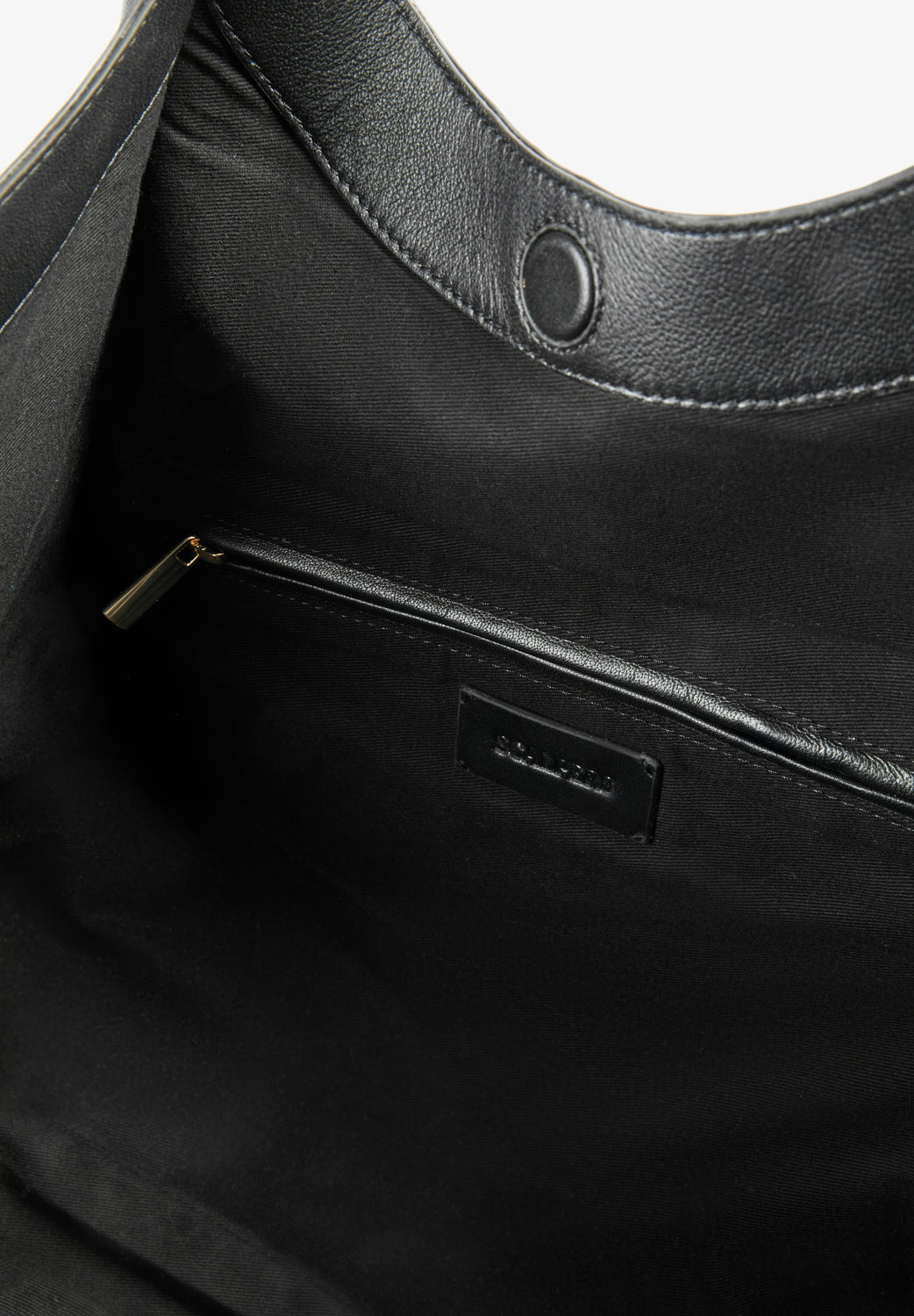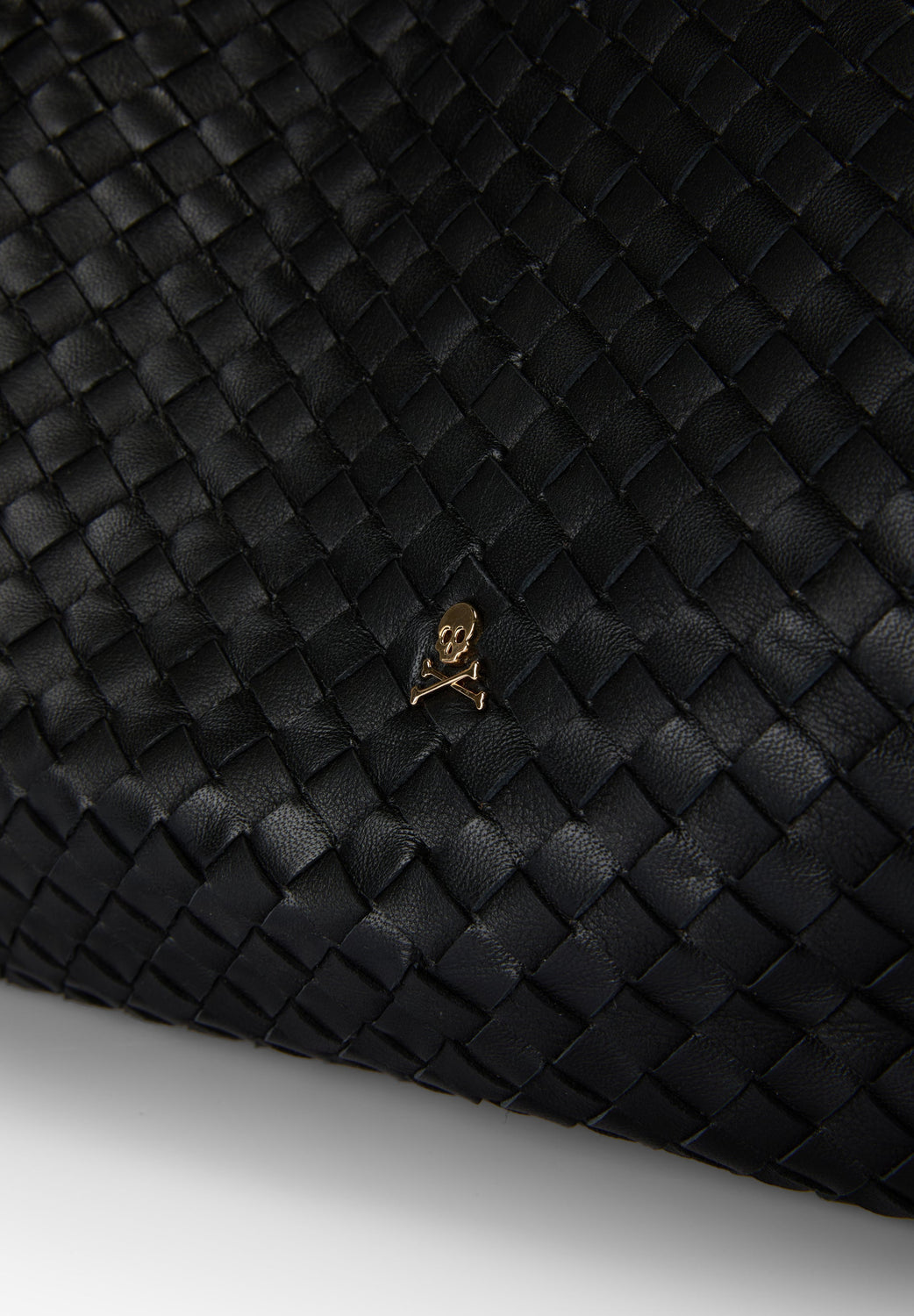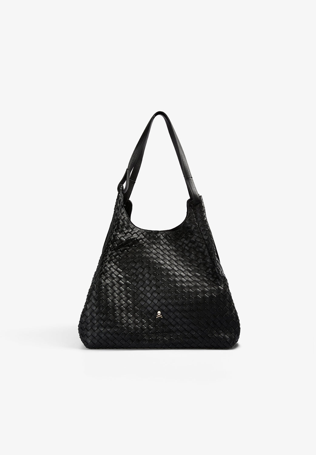 Tote bag made from 100% leather. Lined. Double strap. Metal skull detail. Magnetic button closure. Height: 32 cm/ Length: 54 cm / width: 16 cm / Handle: 70 cm