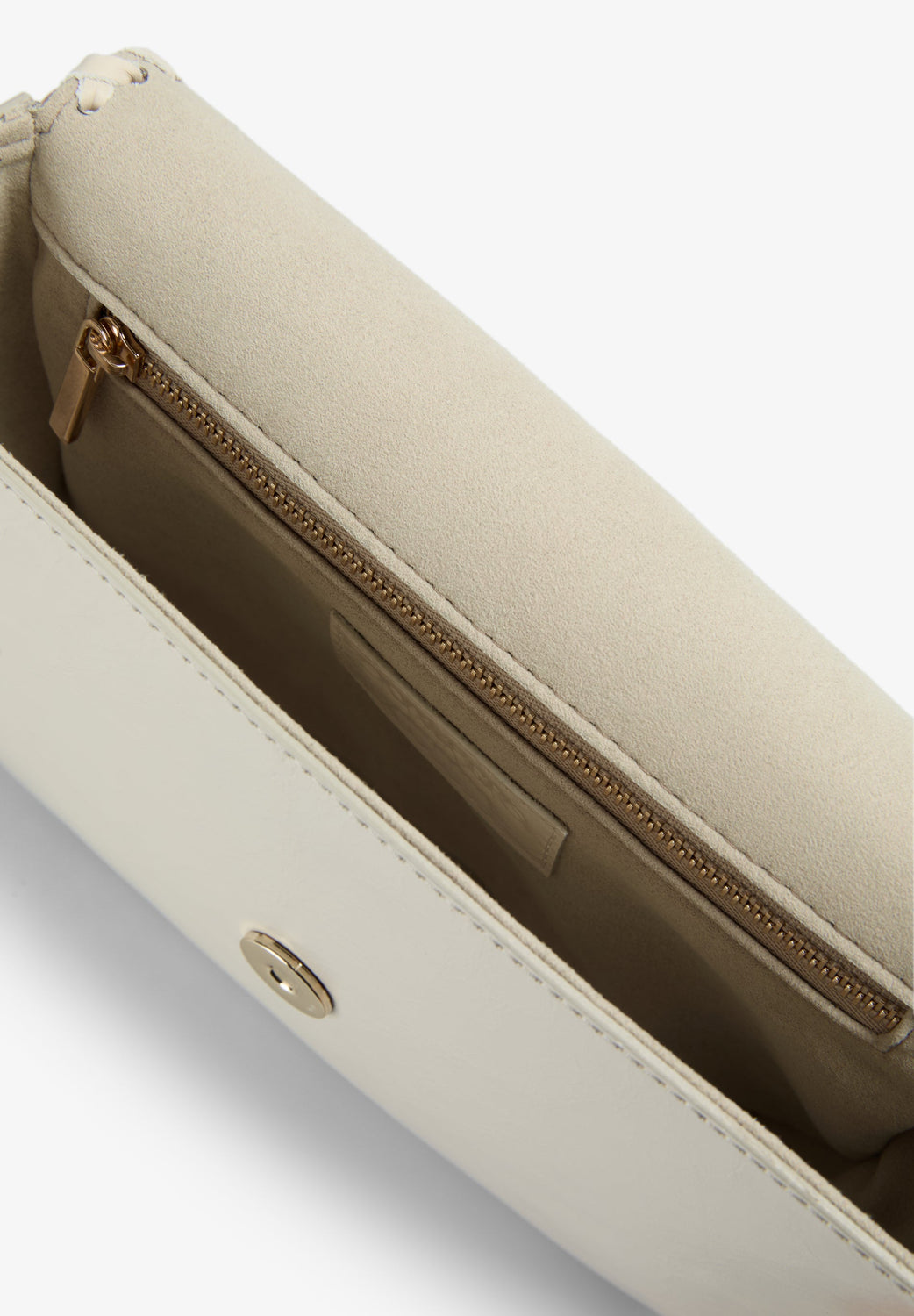 Bag made of 100% leather. Split suede lining. Inner zipped compartment. Braided flap with magnetic button closure. Metal skull on the front. Adjustable strap.