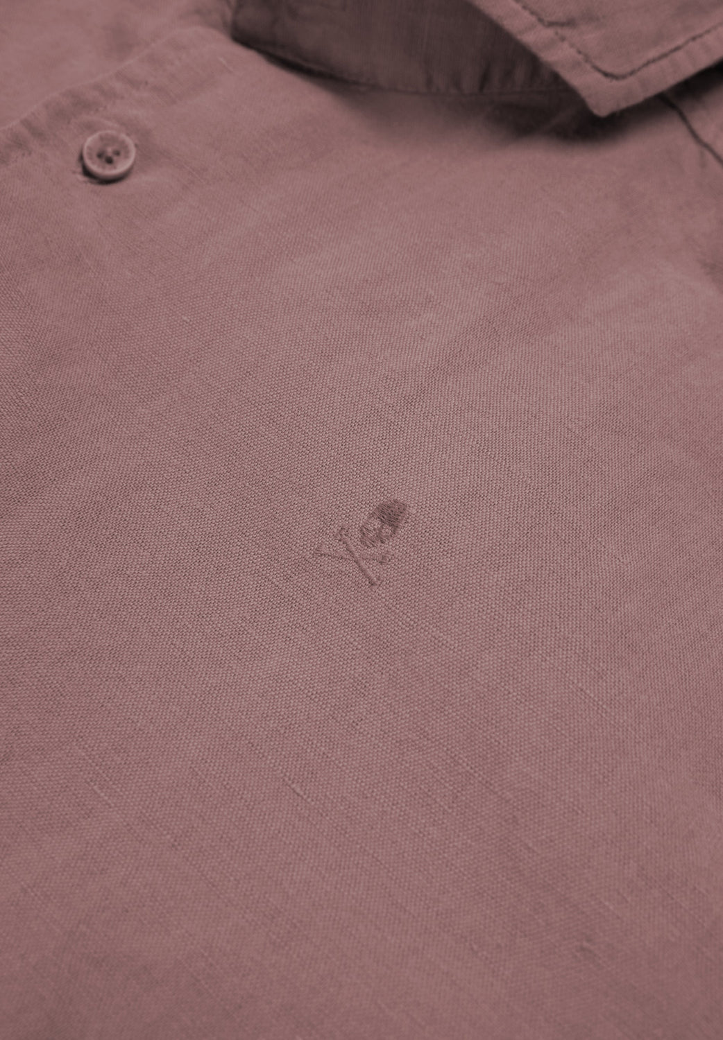 T-shirt made of a linen and cotton blend. Regular Fit. Classic collar and long sleeves with buttoned cuffs. Matching embroidered skull detail on the chest. Front button fastening.