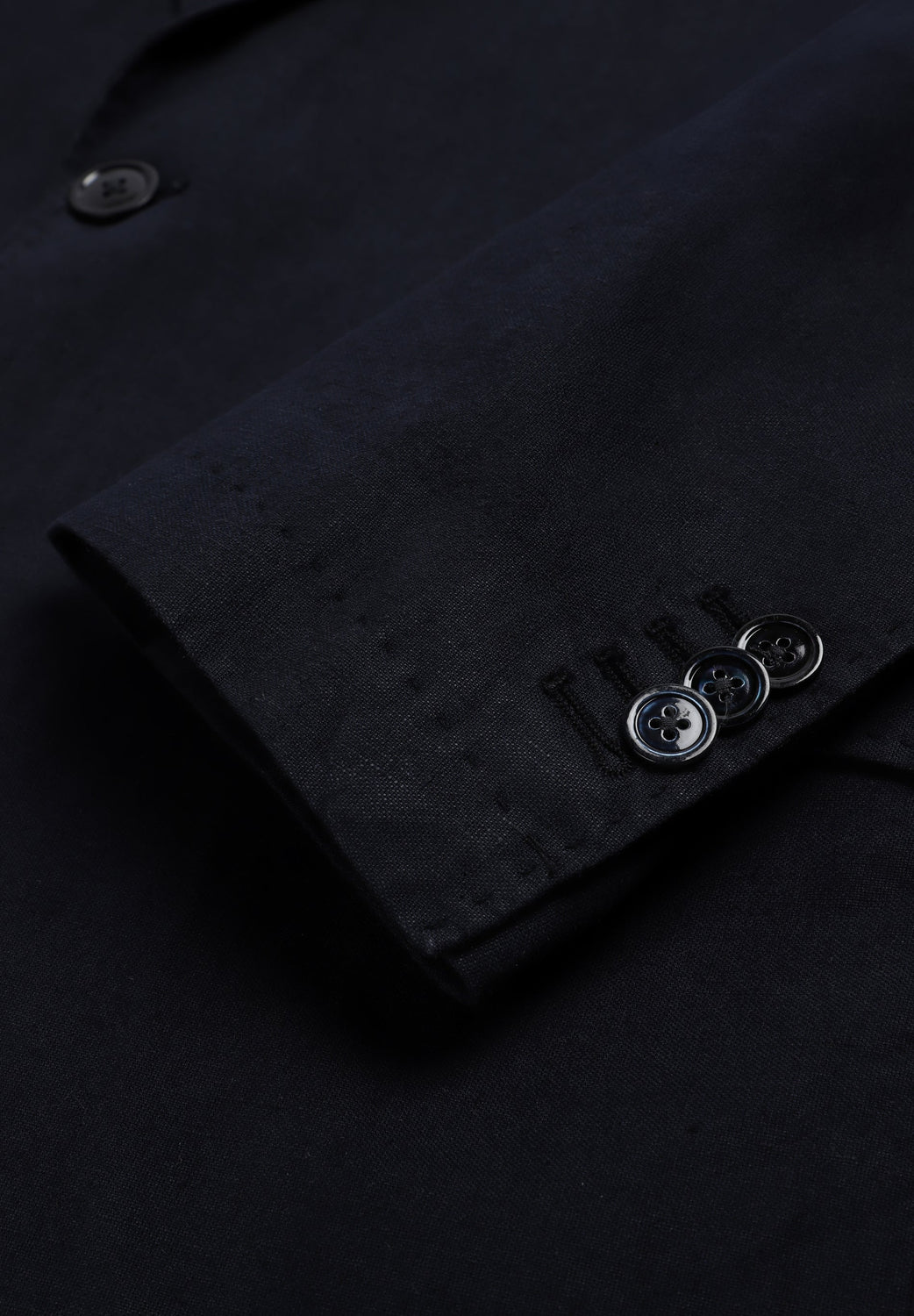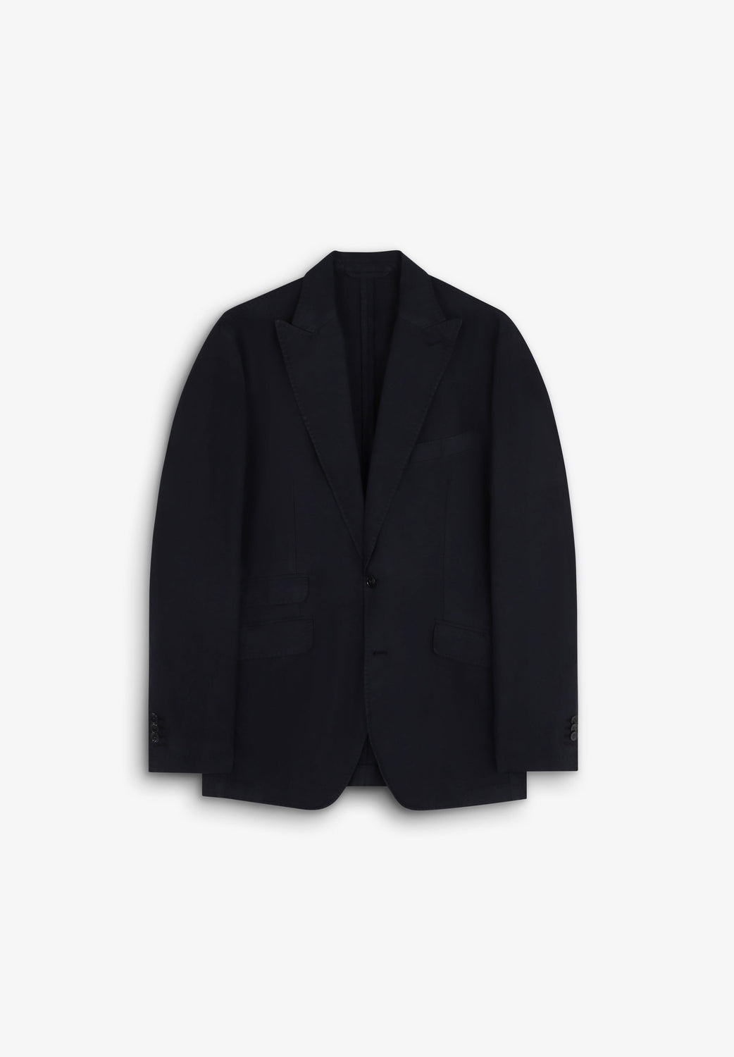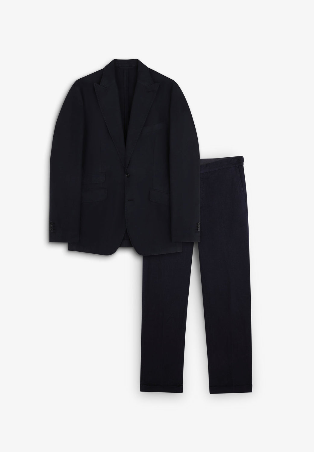Suit made of a linen and cotton blend. Blazer with notched lapels and long sleeves with buttoned cuffs. Welt pockets on the chest and flap pockets at the hip. Inner pocket detail. Hem with back vent. Front button fastening. Trousers with belt loops at the waist. Zip and button fastening with concealed placket. Double welt back pockets with button.