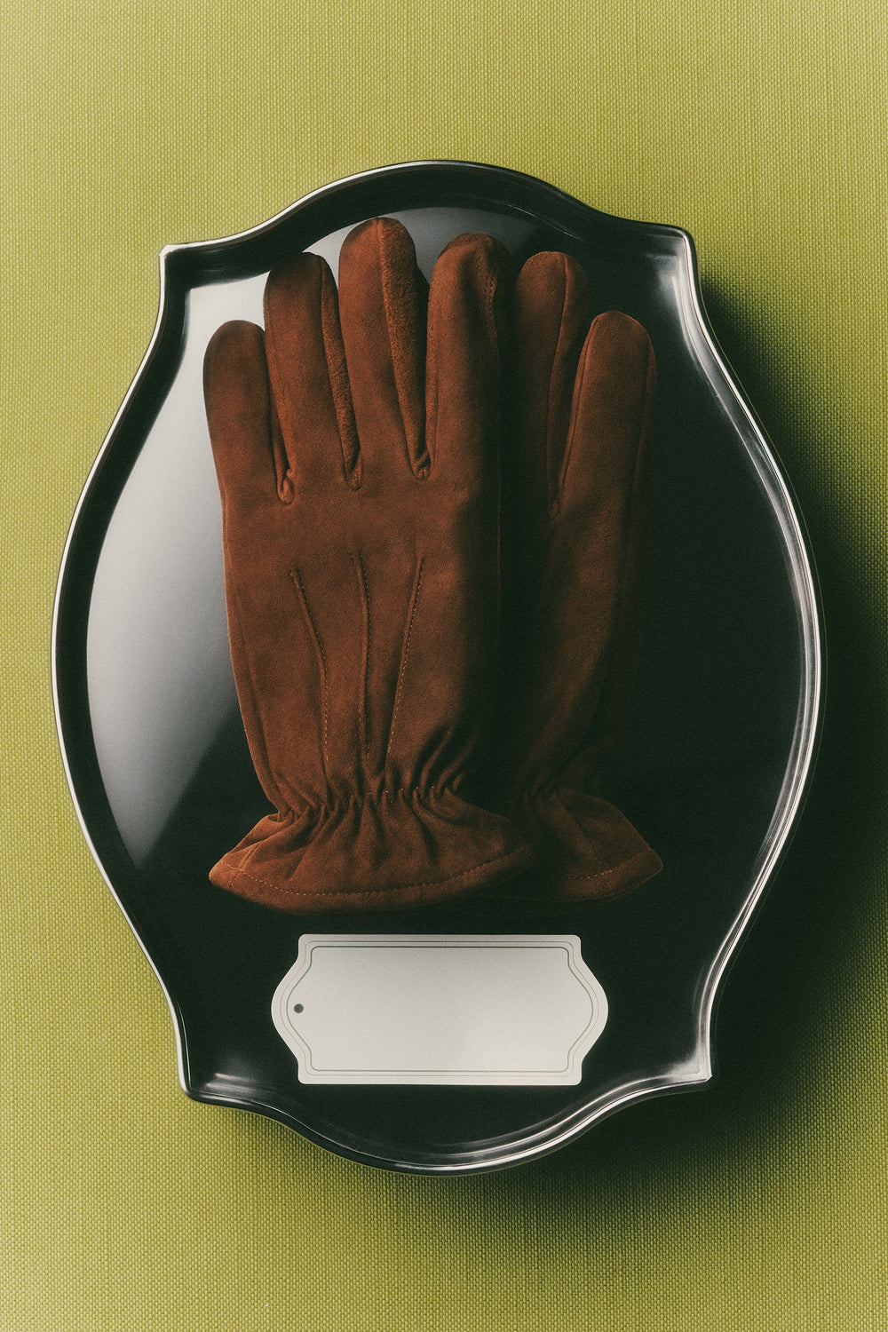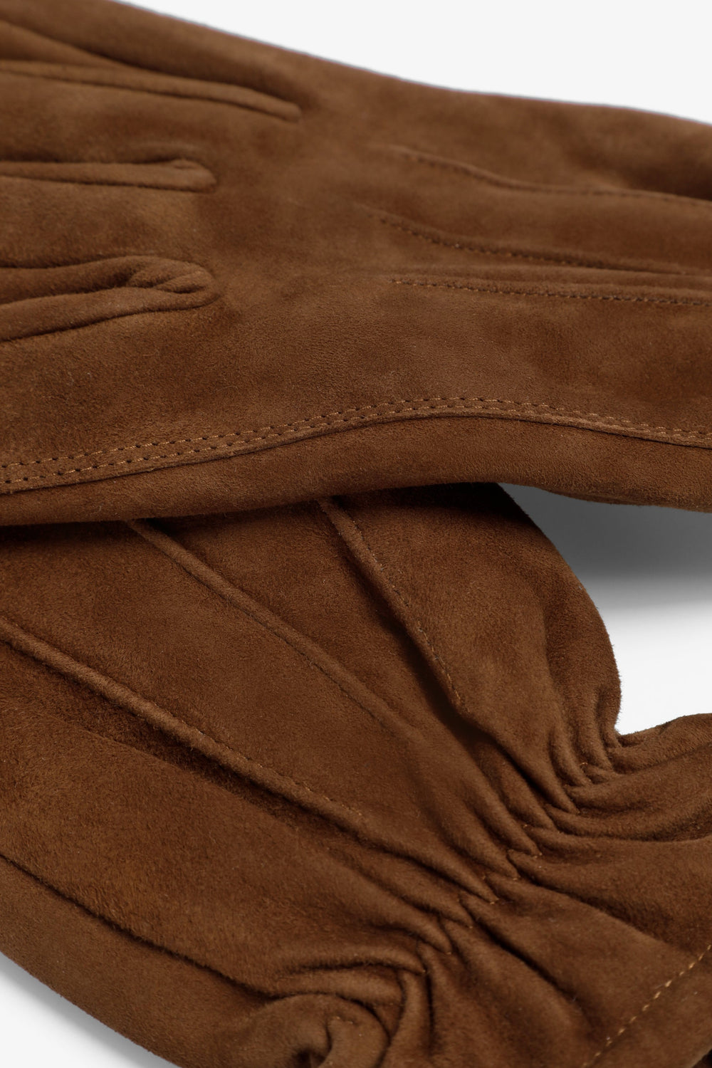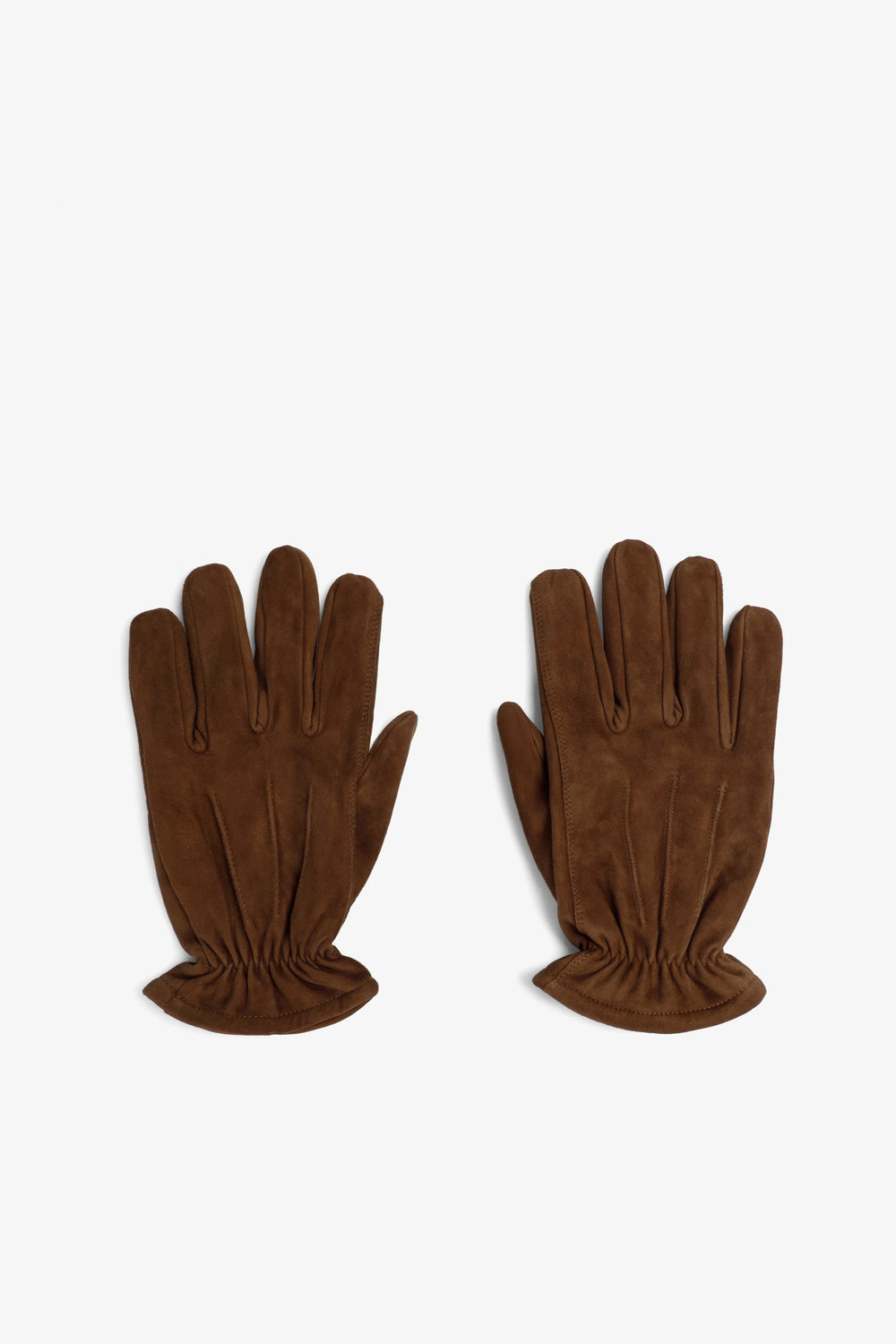 Handschoenen van 100% geitenleer met suède afwerking. Gevoerd. Sluit strak om de polsen.