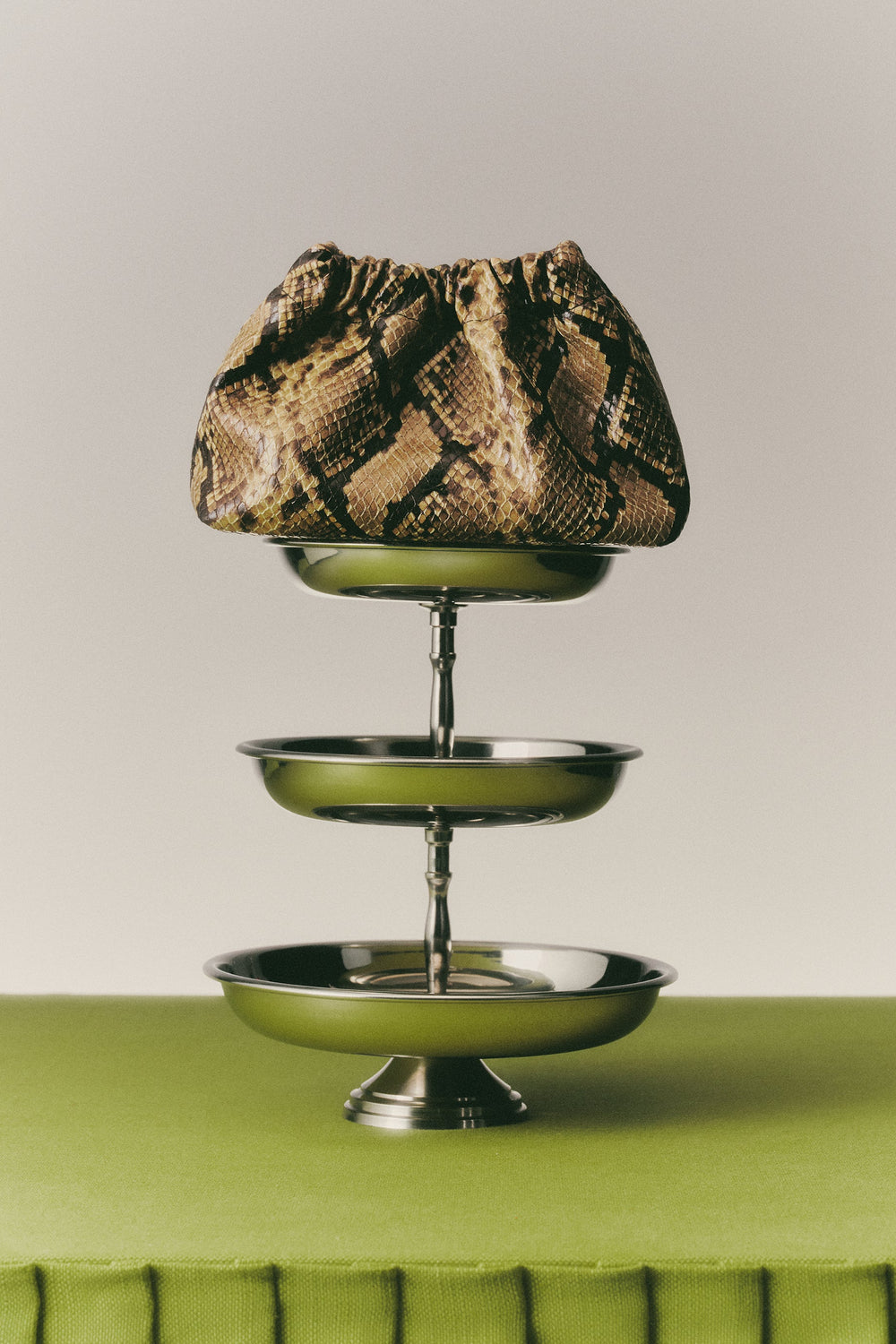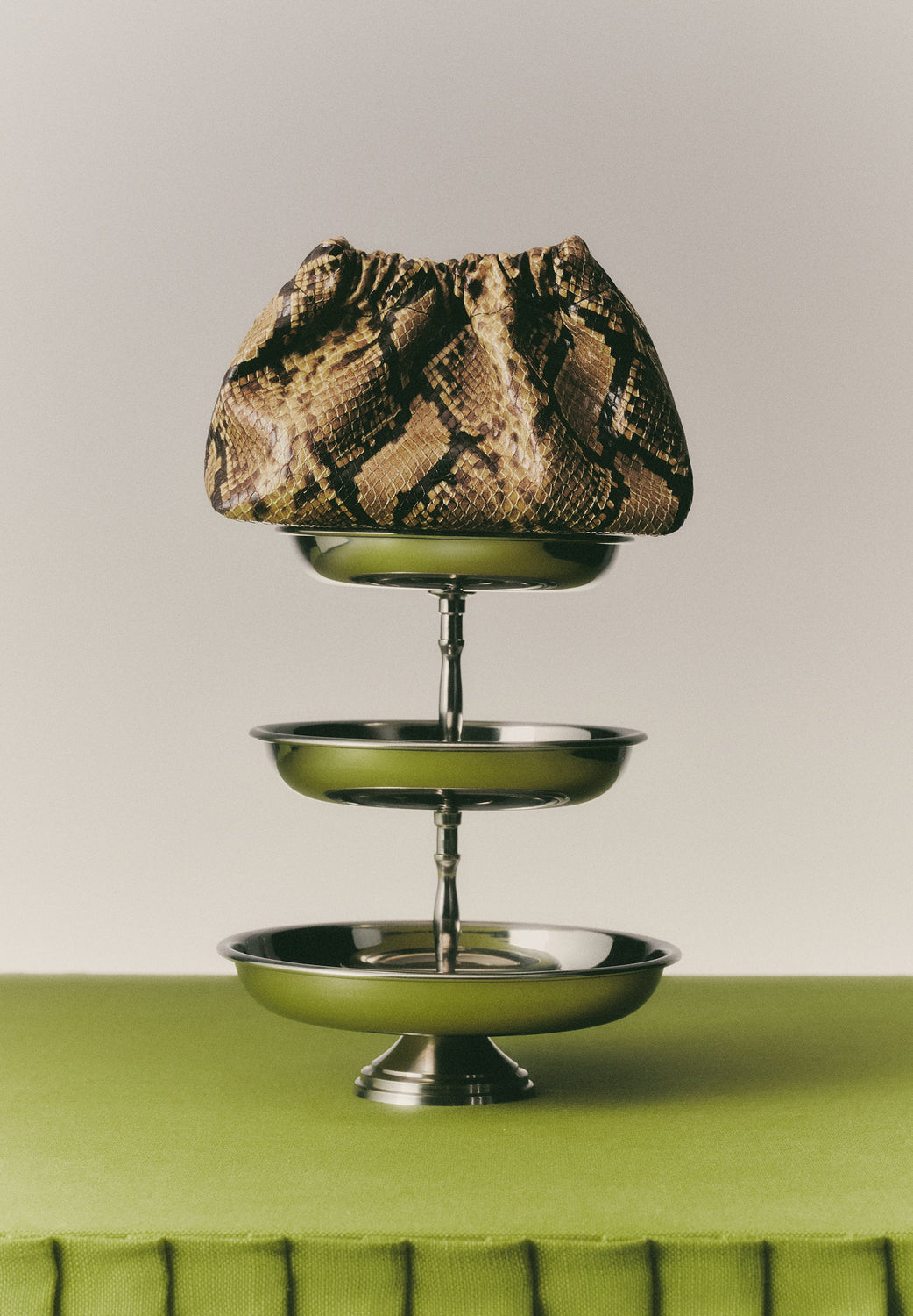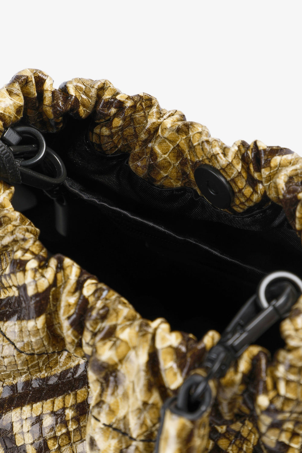 Handtas van PU met dierenprint. Binnenvoering, afneembaar dubbel lang handvat. Knoopsluiting met magneet.