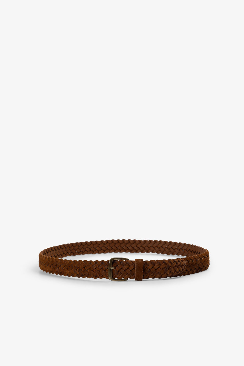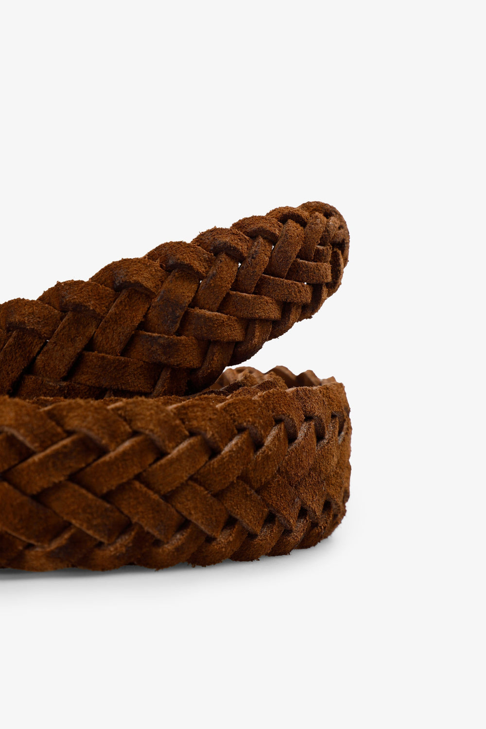 Belt made of 100% cowhide leather. Suede. Metal buckle. Braided design. Logo detail.