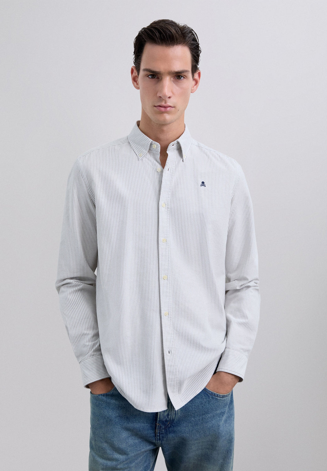 Striped shirt made of 100% BCI cotton. Classic collar, button fastening, regular fit, contrast skull on chest. Buttoned cuffs.
