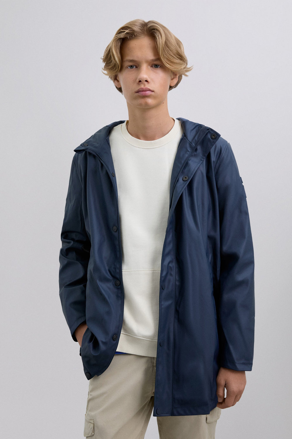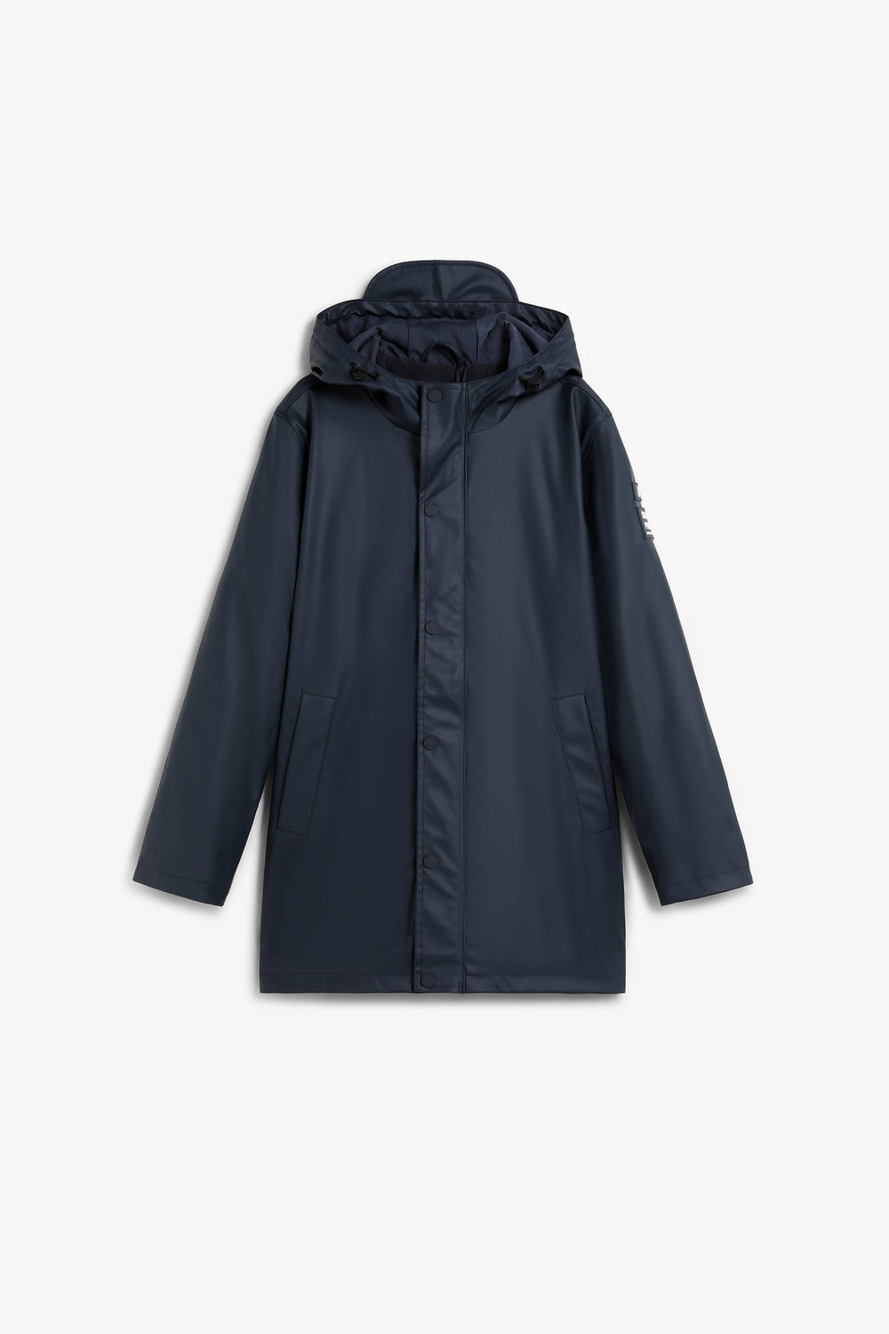 Waterproof parka with adjustable hood. Side pockets with placket and snap button. Synthetic lining. Rubber logo patch detail and skull. Button fastening. Long sleeves.