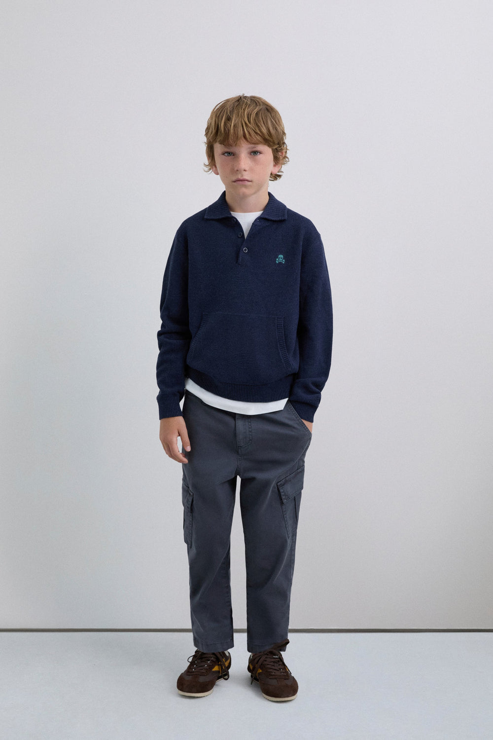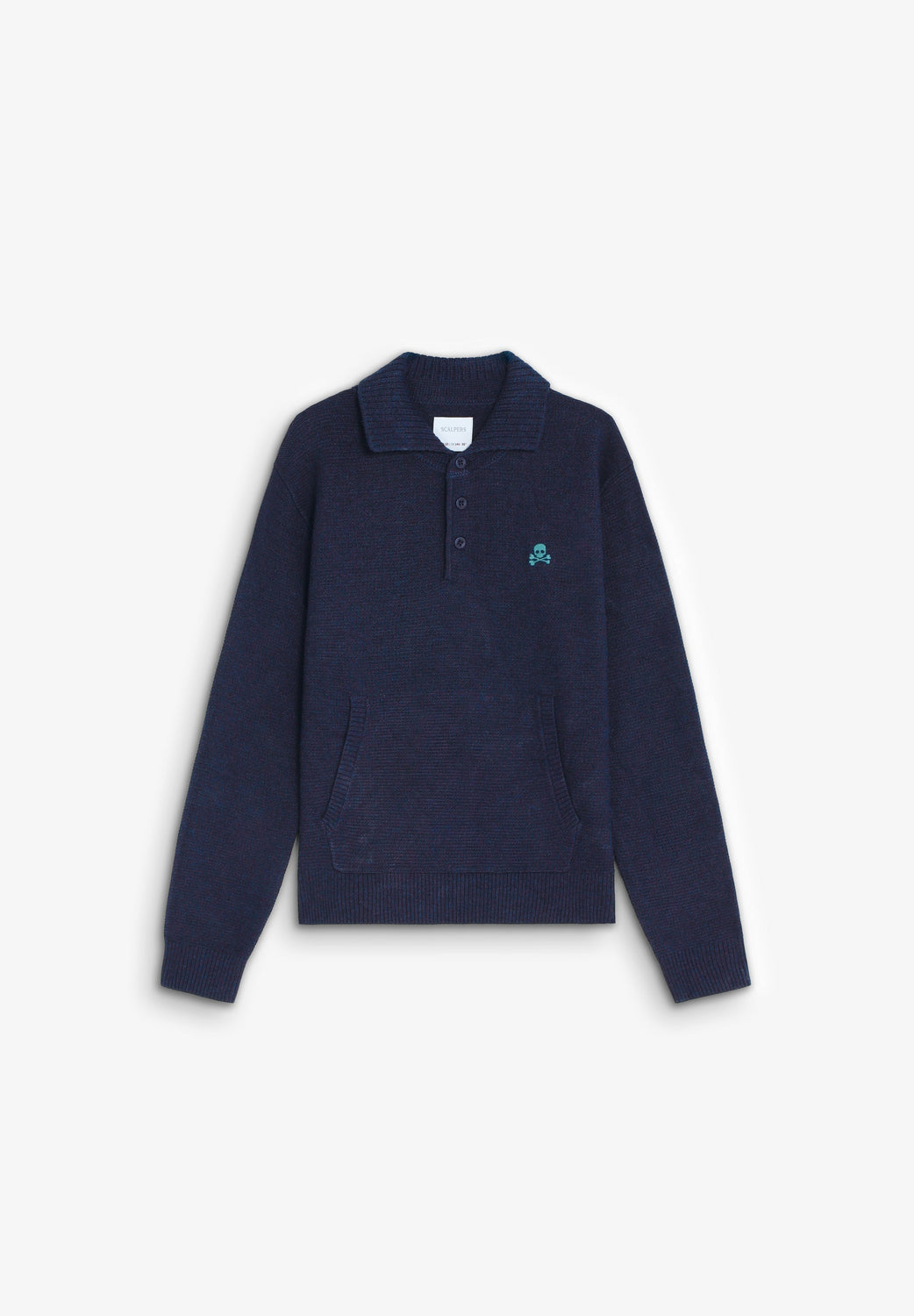 Knit sweater. Polo shirt collar. Long sleeves. Buttoned collar. Contrast embroidered logo.