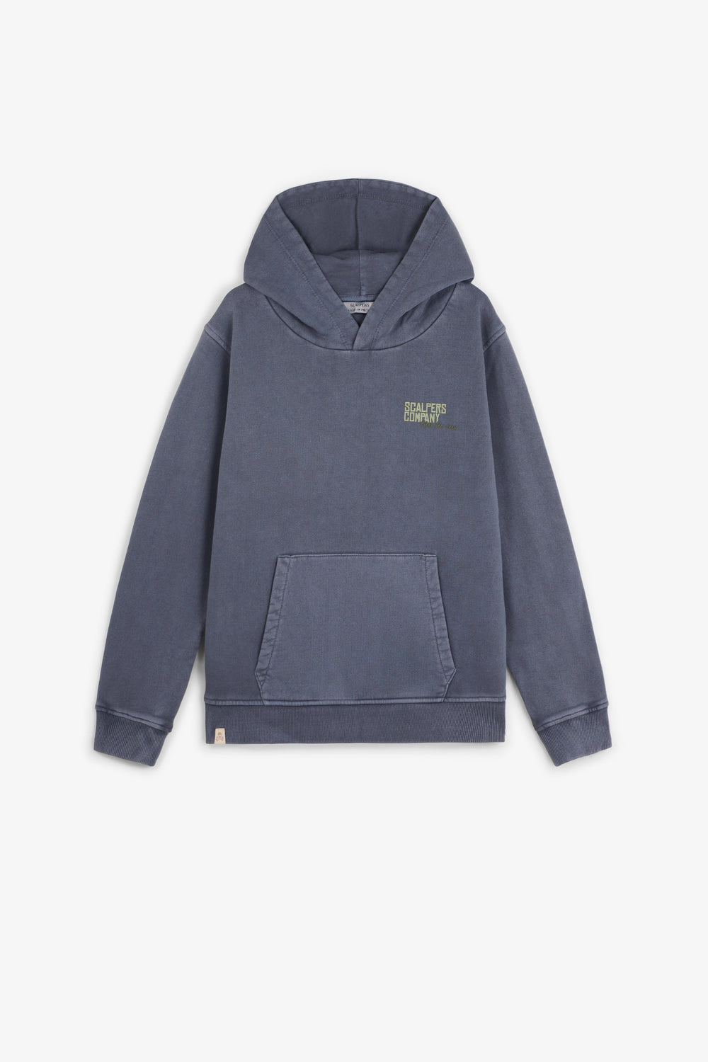 Sweatshirt with hood made of 100% BCI cotton. Print on chest and back. Long sleeves with ribbed cuffs. Front pouch pockets. Skull label detail on waistband.