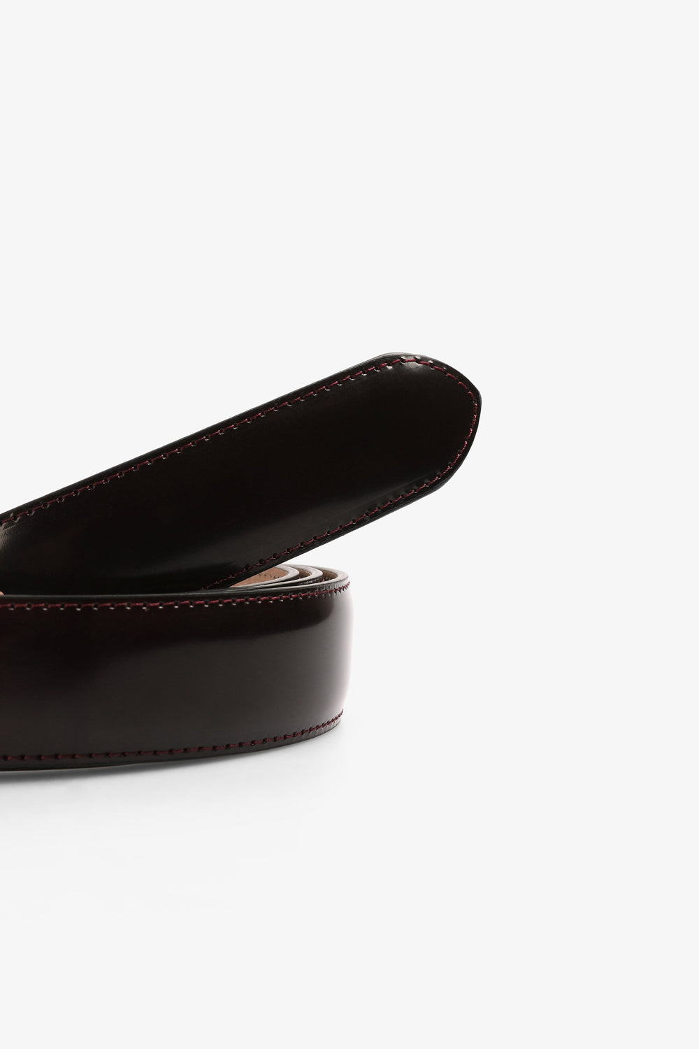 Belt made of 100% leather with a shiny finish. Metal buckle.