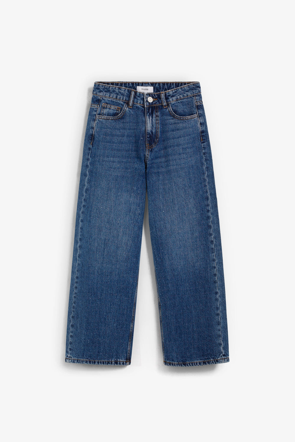 Denim broek van 100% katoen, rechte regular fit metstuds op de voorkant, rits- en knoopsluiting.