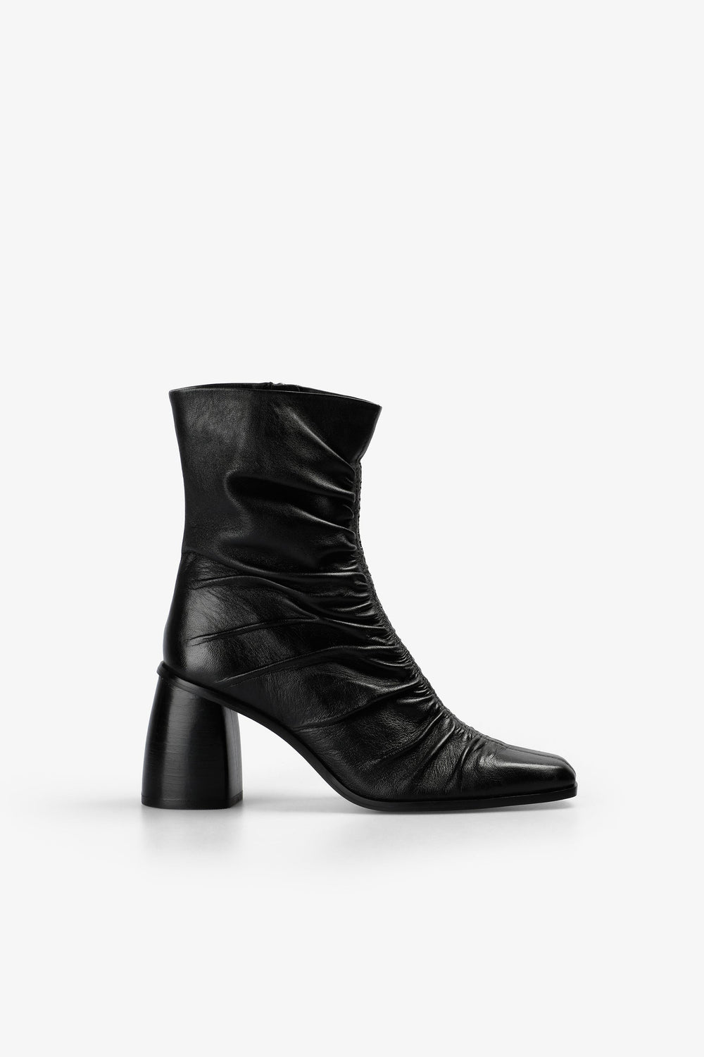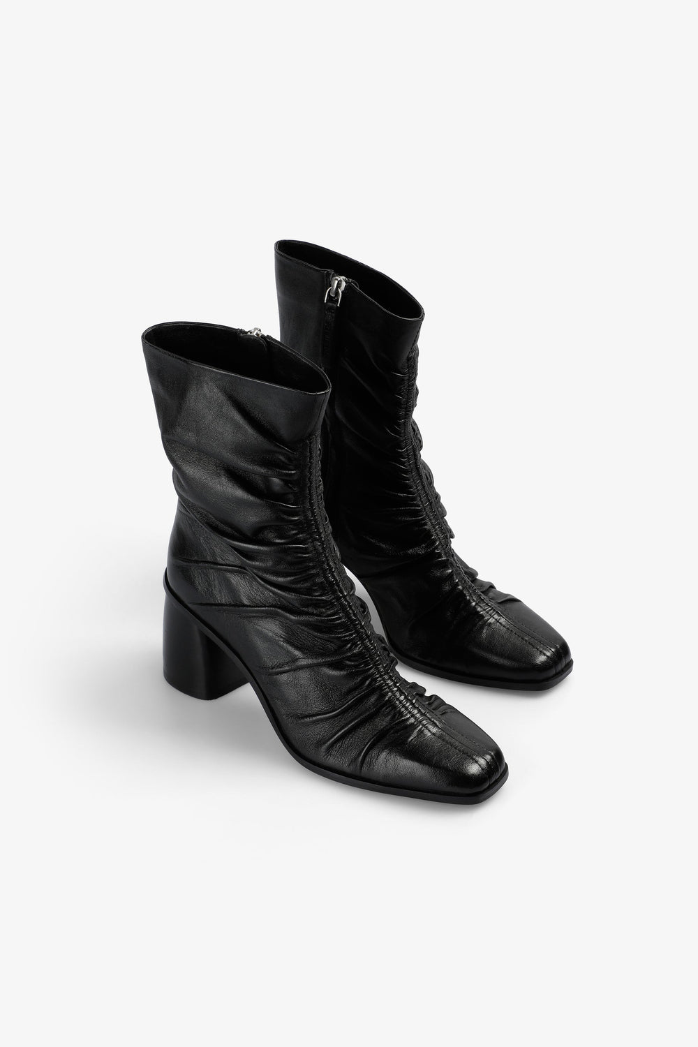Laarzen gemaakt van 100% leer. Halfhoge hak. Detail met gedrapeerd effect middenvoor. Sluiting met rits. Geborduurd logo op de rits. Hakhoogte: 5 cm.