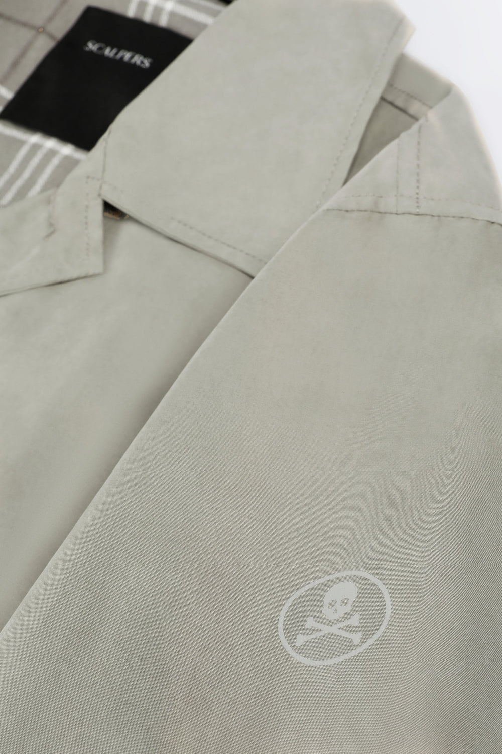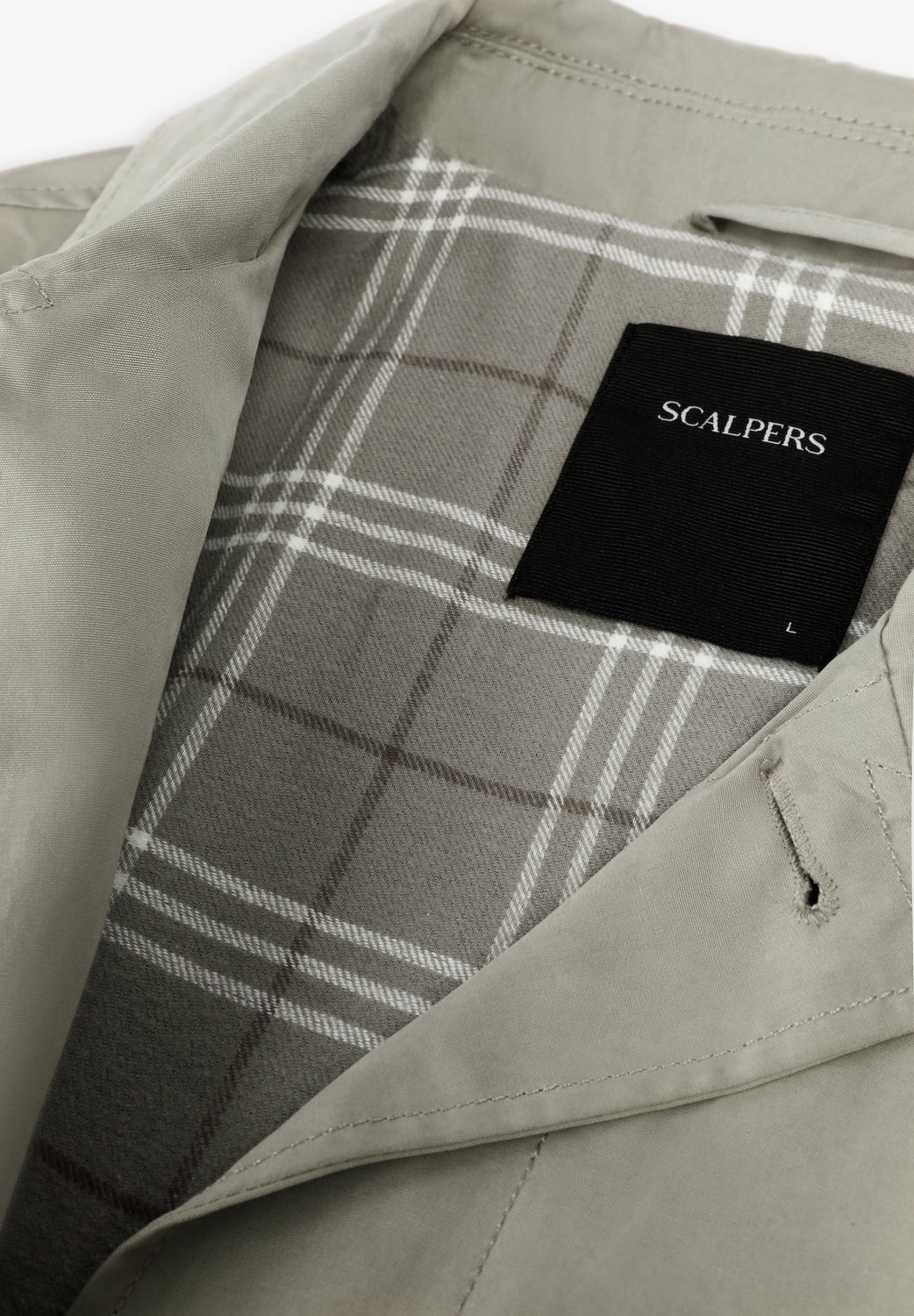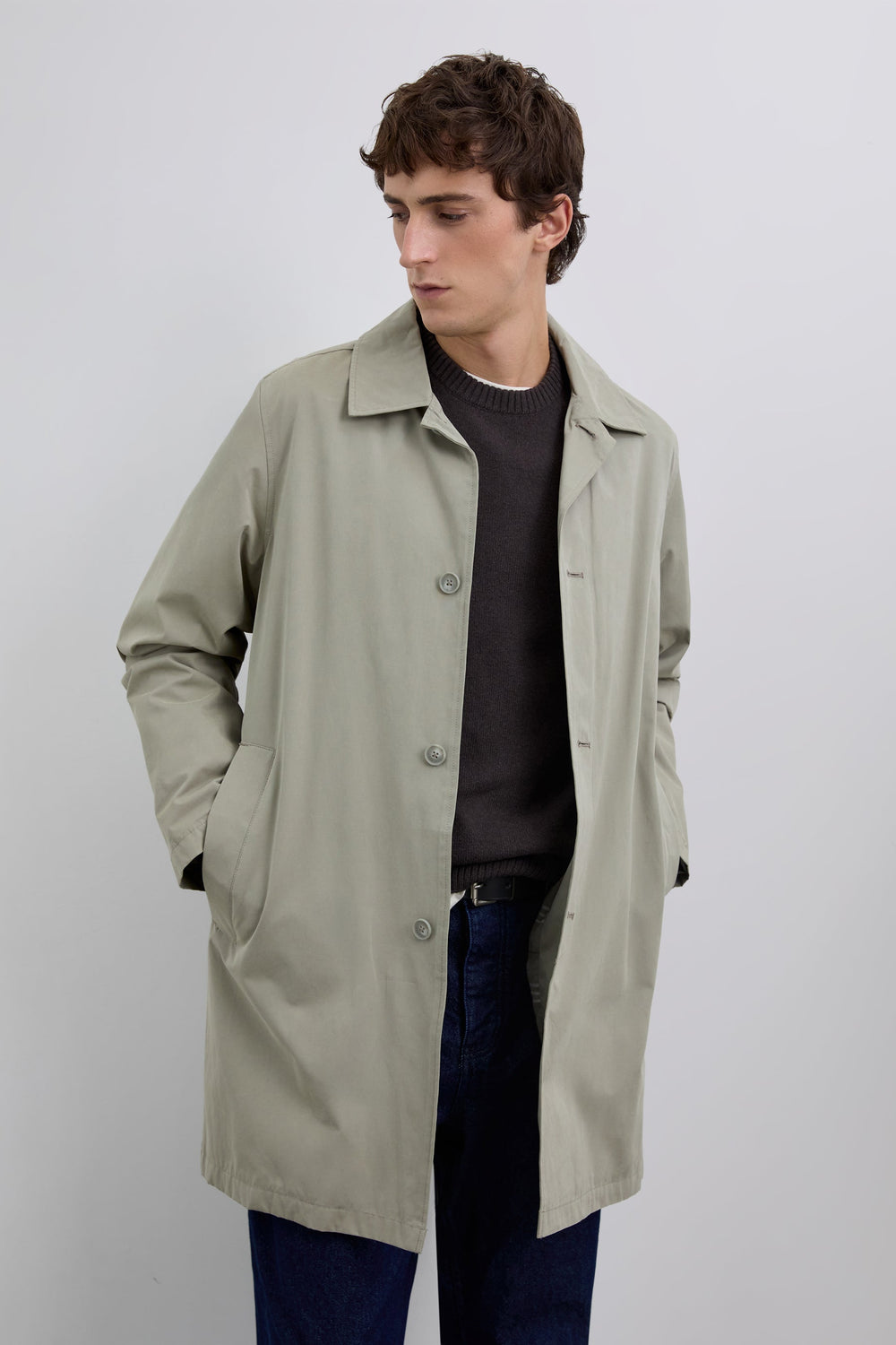 Trenchcoat met knoopsluiting aan de voorkant. Overhemdkraag. Twee schuine zakken aan de voorkant. Naaddetails over de lengte van het kledingstuk. Sluiting aan de voorkant met knoopbies. Geruite voering aan de binnenkant. Logolabel op de zak en binnenkant en doodshoofdprint op de mouw.