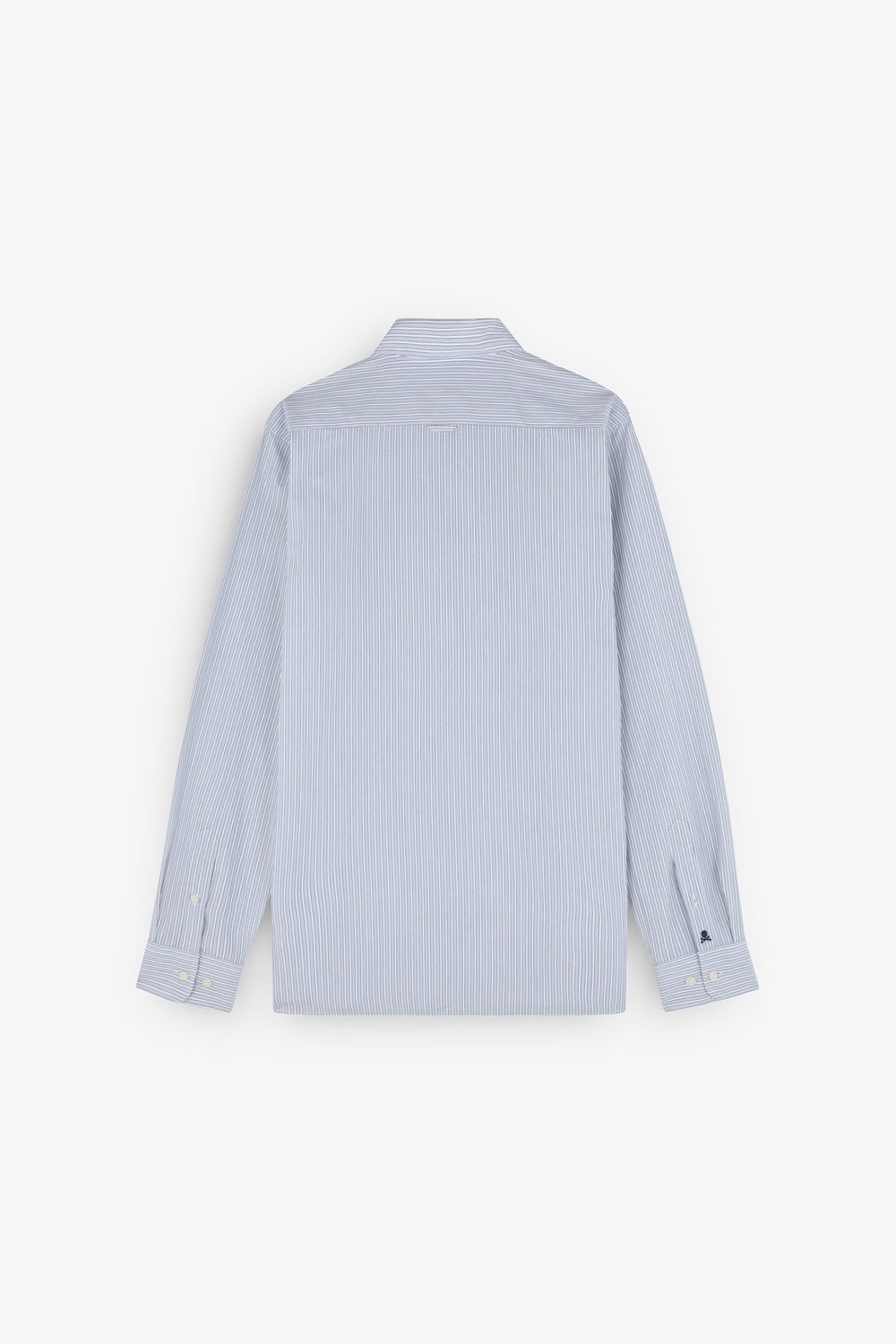 Overhemd gemaakt van 100% BCI-katoen. Lange mouw. Gestreepte print. Borstzak. Geborduurd contrasterend doodshoofd op de manchet.