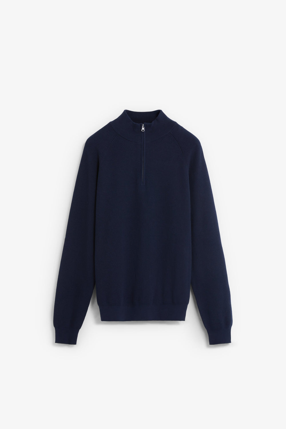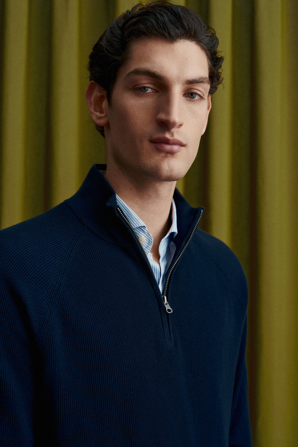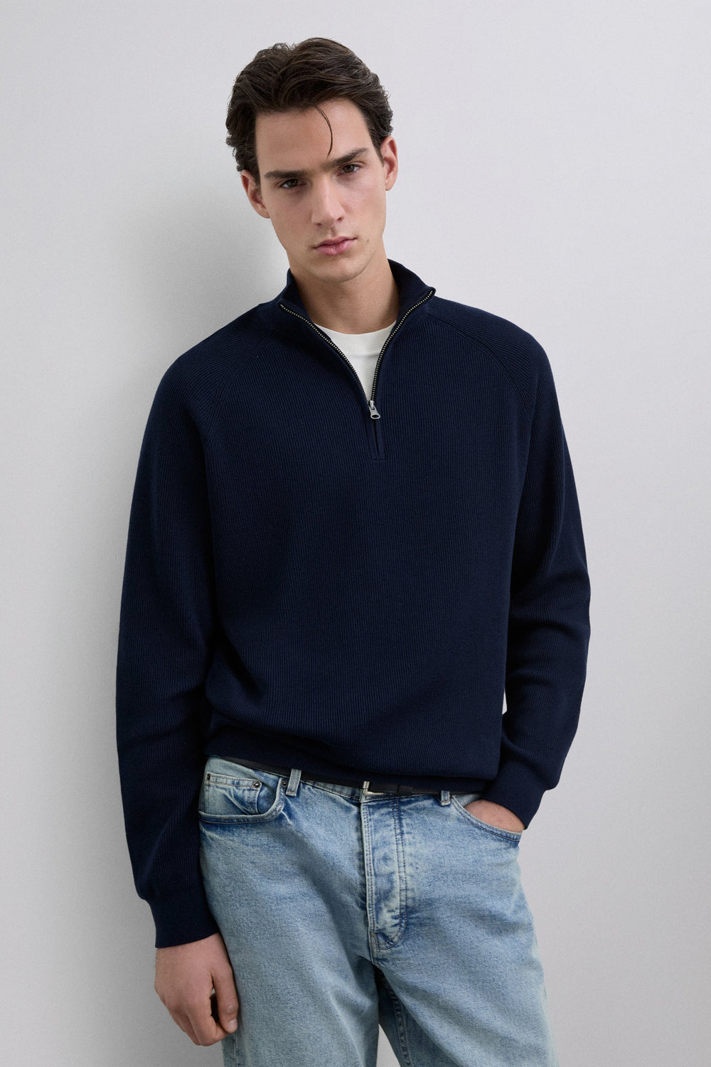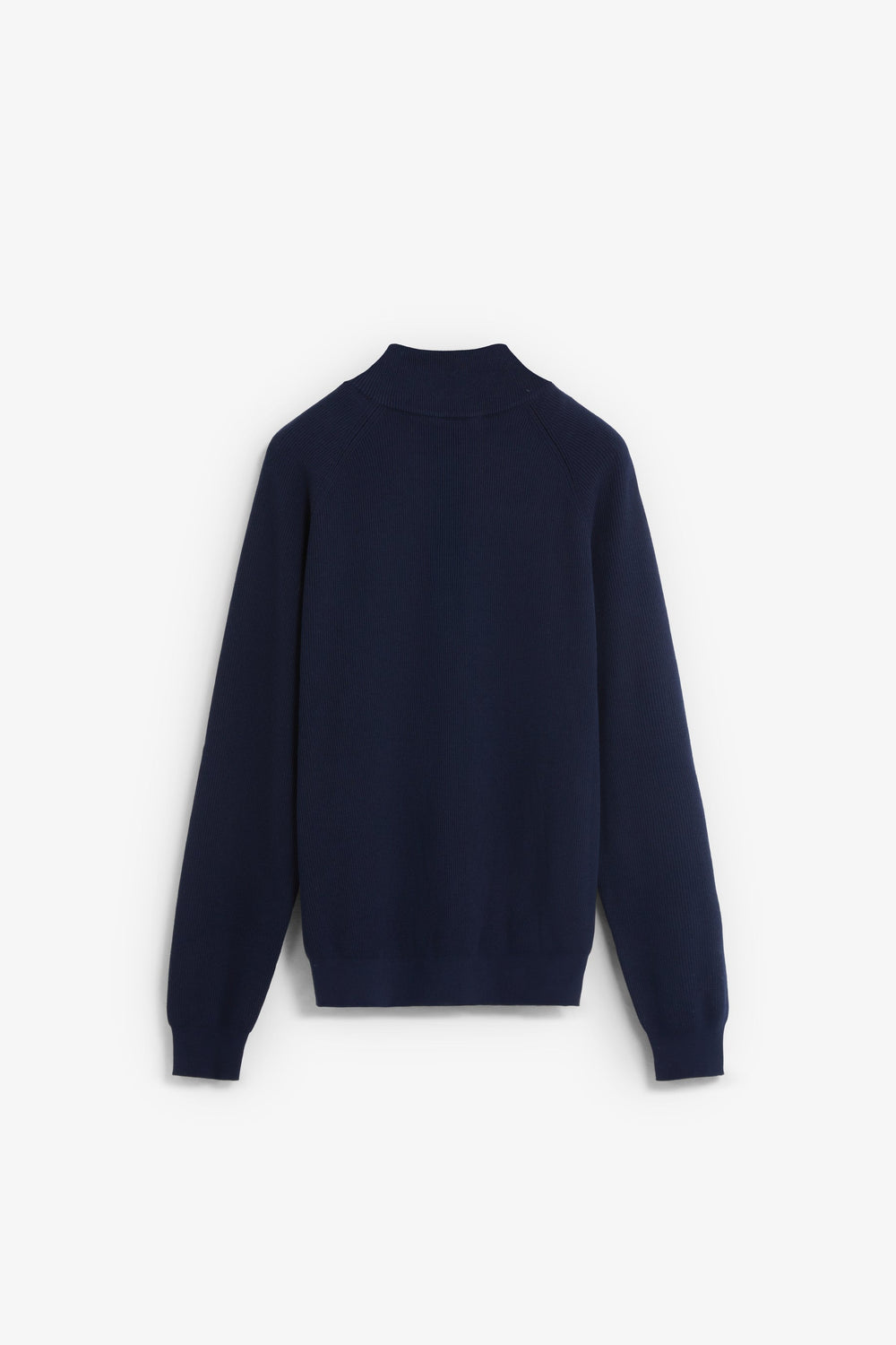 Trui gemaakt van 100% BCI-katoen. Lange mouw. Opstaande kraag met ritssluiting.