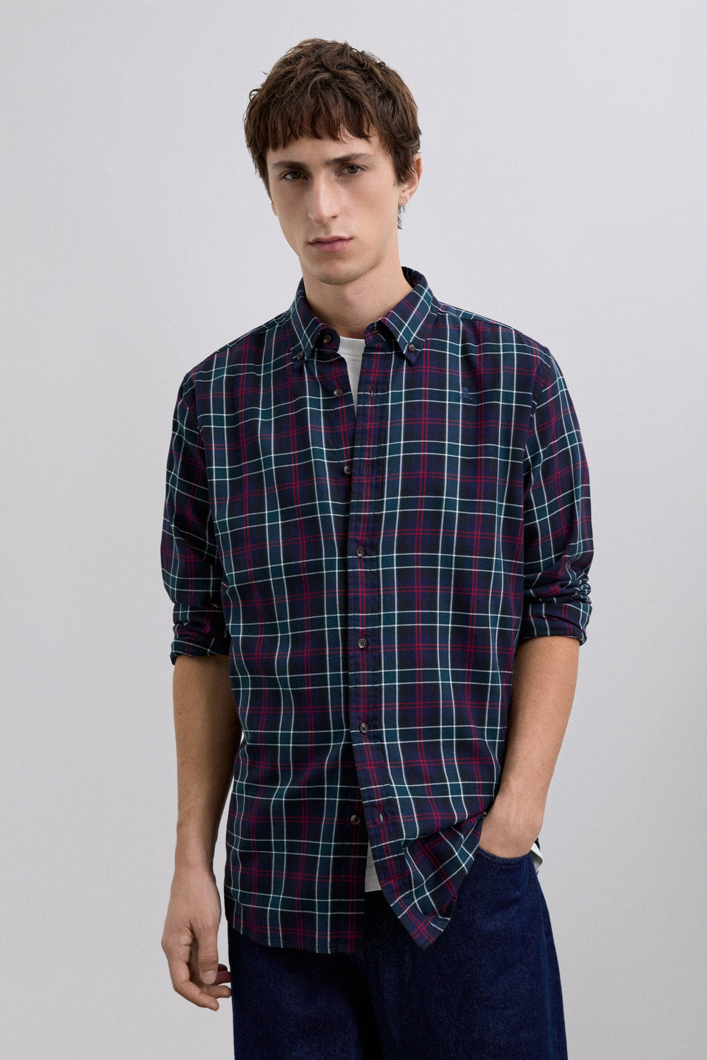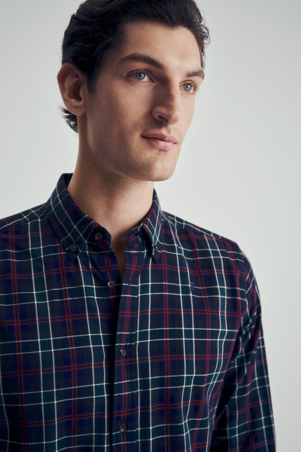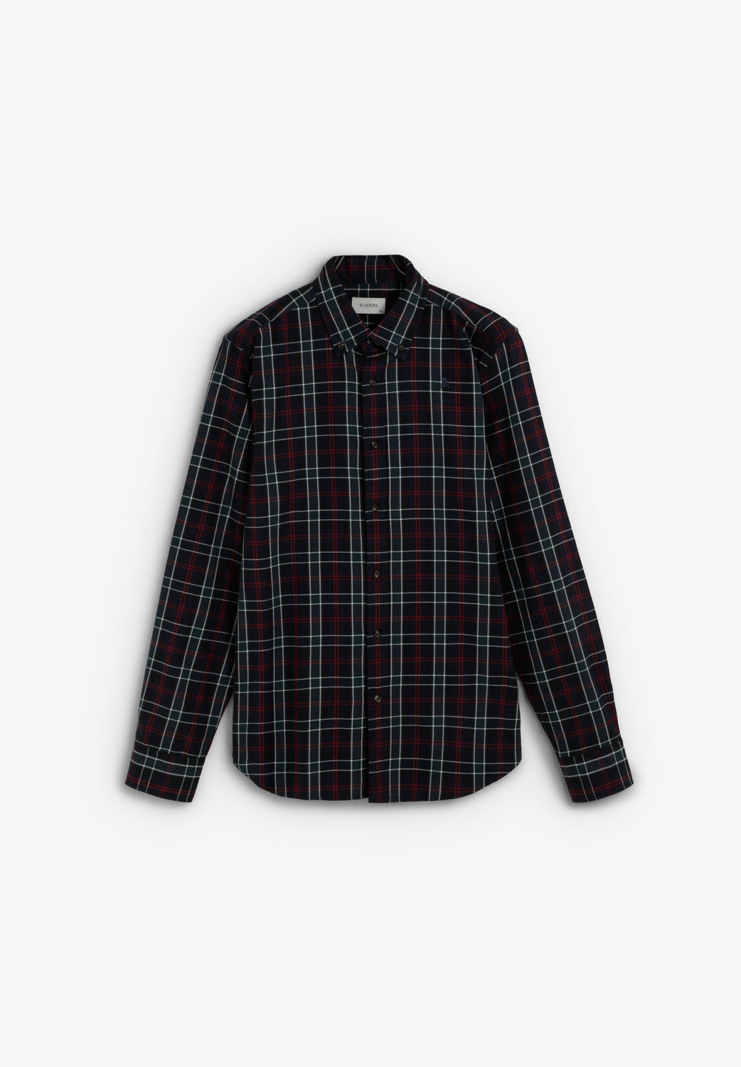 Overhemd van BCI-katoen met ruitmotief. Regular fit, geknoopte kraag en knoopsluiting. Lange mouwen met manchetten met knopen en contrasterende geborduurde doodskop op de borst.