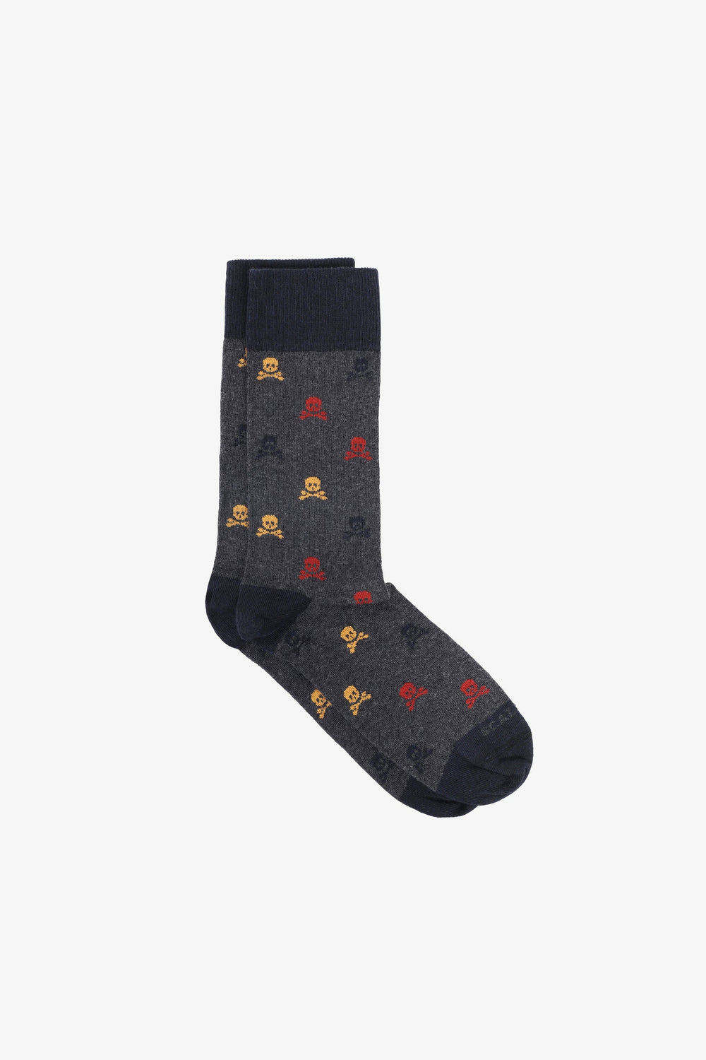 Calcetines con print de calaveras all over confeccionados en tejido de algodón elásticos. Caña media.
