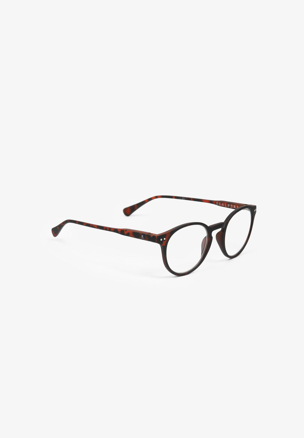 Round resin sunglasses made of polycarbonate. Prescription lenses and skull detail on the side.