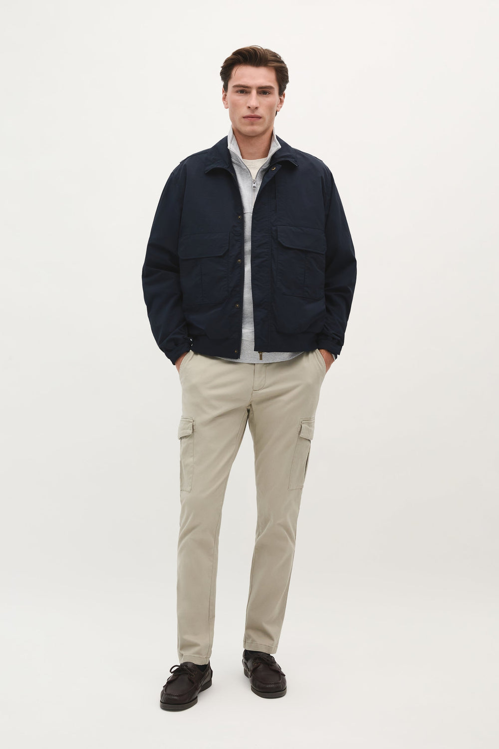 Cargo trousers made of slightly stretch BCI cotton. Regular fit, button and zip fastening and side and back pockets. Belt loops at the waist and flap pockets on the leg.