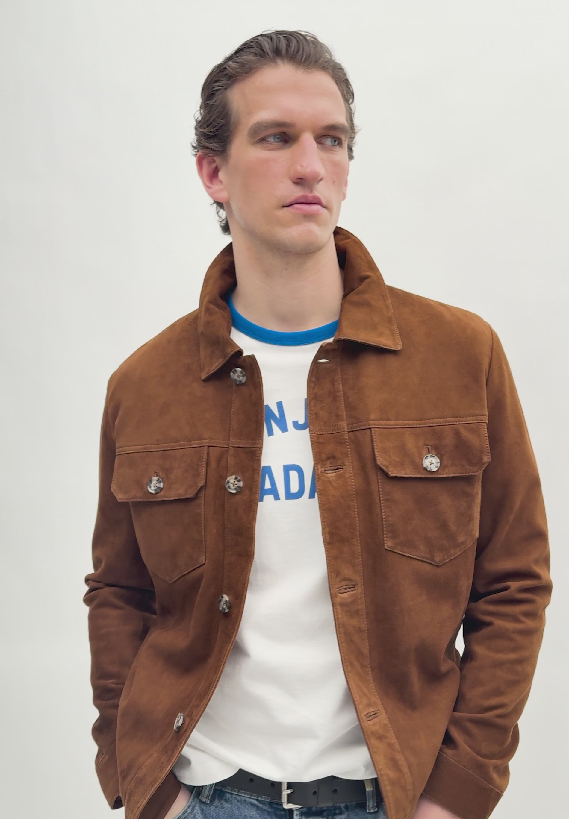 Jacket made of 100% suede. Button fastening. Chest pockets with button fastening on flap. Button detail on the cuff.