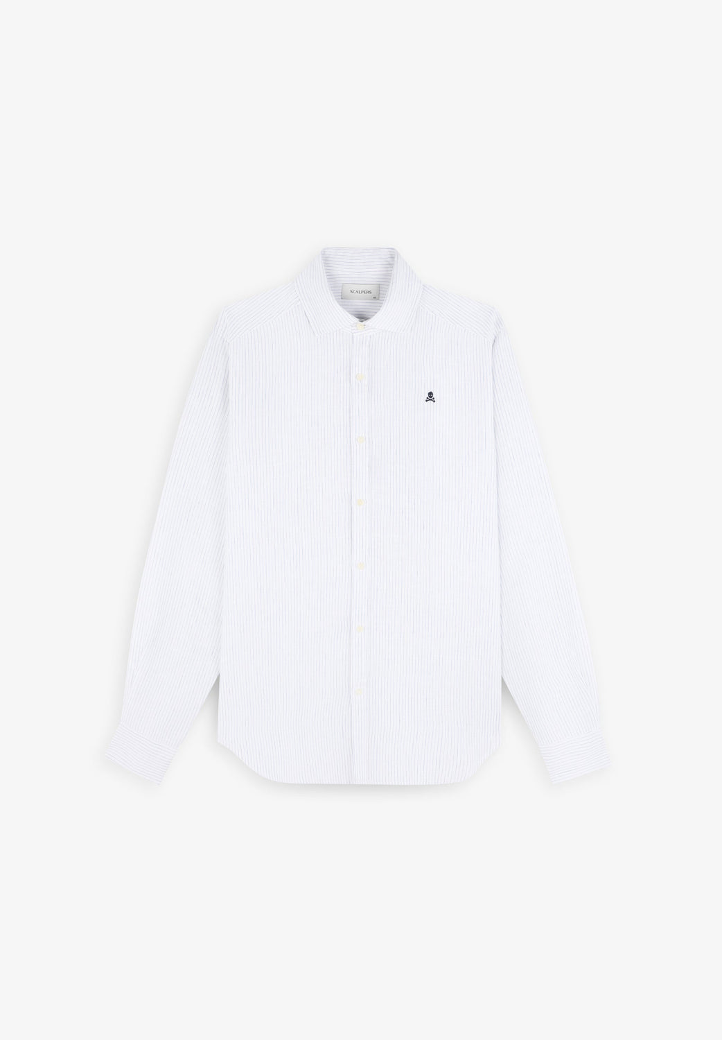 Shirt made of 100% linen fabric. Long sleeves. Front button fastening. Adjustable button fastening on the cuffs. Embroidered monogram on the front. Side logo label detail.