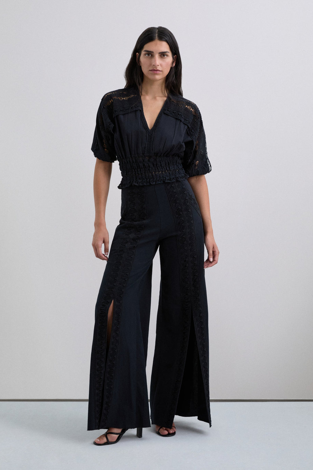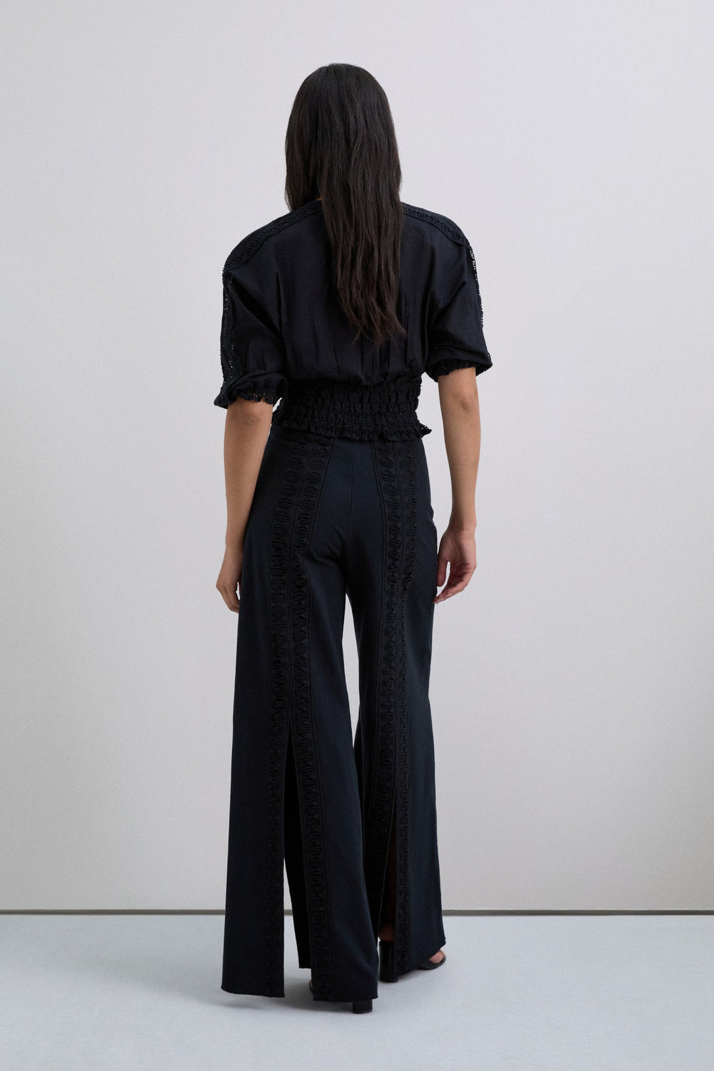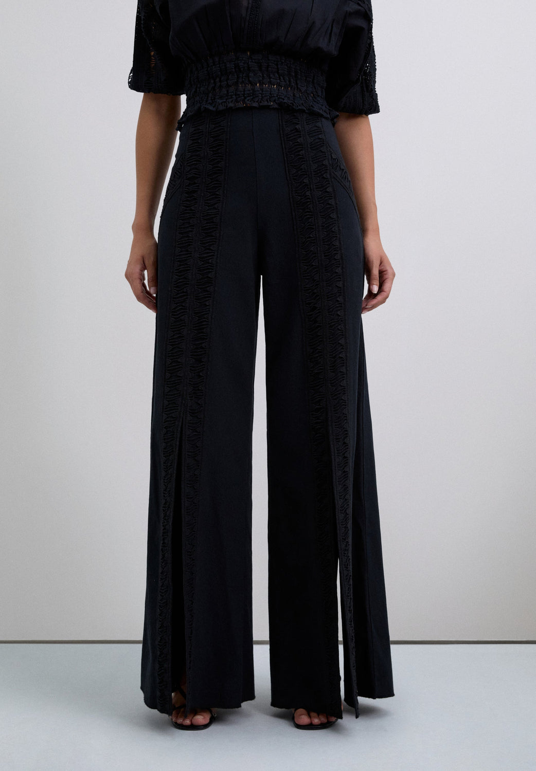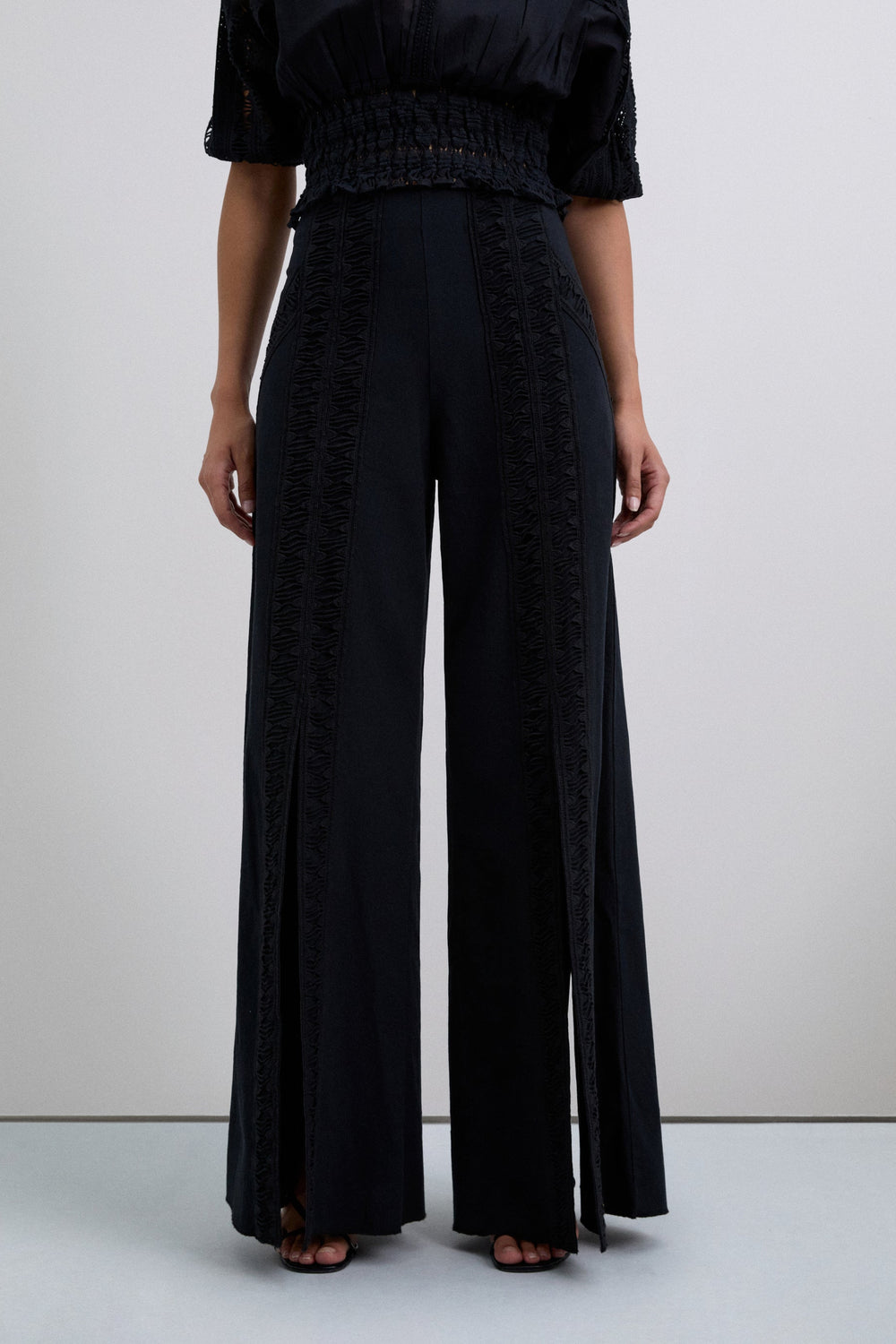100% cotton trousers with slits and embroidered details. Full length, regular fit.